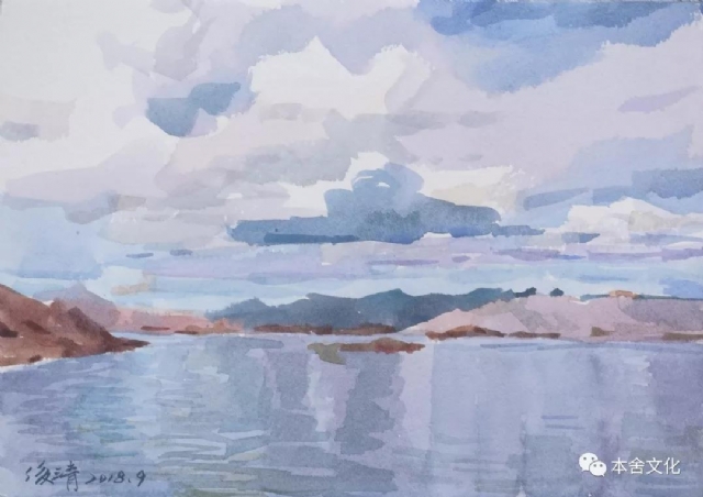 書畫之妙,當(dāng)以神會,難可以形器求也。今觀俊清之水彩,或淡雅,或晴朗,或空濛或激越,色感富有生命張力,簡約且有印象之寫意也!