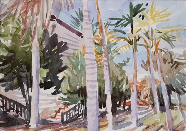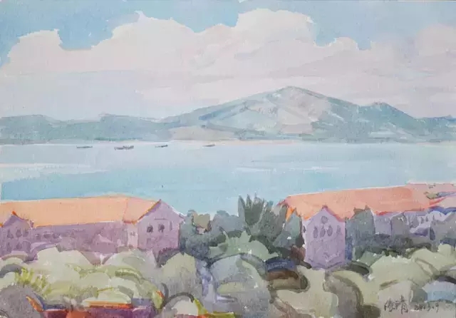水彩不同于油畫(huà)的表現(xiàn),它更敏感與每一絲水的氣韻,每一筆著色的考量,又在其間布置下諸多的仿佛天成偶得的精彩,十分難以駕馭,最是考驗(yàn)天賦與功底。但黃老師的水彩,光影變換清逸,筆觸隨性,其靈動(dòng)中撲面而來(lái)的自然親和之氣:廈門(mén)的海風(fēng)、海邊氤氳的潮氣,午后清爽的陽(yáng)光……獨(dú)有的絢麗色調(diào)渲染的夢(mèng)之景象,真正讓人感覺(jué)到畫(huà)面的鮮“活”,這是老師對(duì)每一副畫(huà)作的精心設(shè)計(jì),也是老師下筆有神的見(jiàn)證。