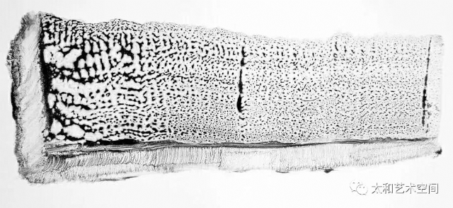 如果有著病毒的抵抗,那是我們生命自身中的免疫力,此免疫力也是來自于身體中的自然力量,只是需要不斷激活。水墨之為水墨,乃是生命胚胎中干細(xì)胞的那種活化生長性,水墨藝術(shù)就是胚胎化的再激活,在老赫的作品上,水墨的形態(tài)乃是面對病毒的泛濫所激發(fā)的生長因子!如果細(xì)胞是有著神圣性的病毒,那么,水墨的胚胎化力量就是客服病毒的默化力量,水墨藝術(shù)只有喚醒了此無盡生長的力量,打開玄牝之門,讓每一筆都保持綿綿若存的生長性,才可能成為靈媒。