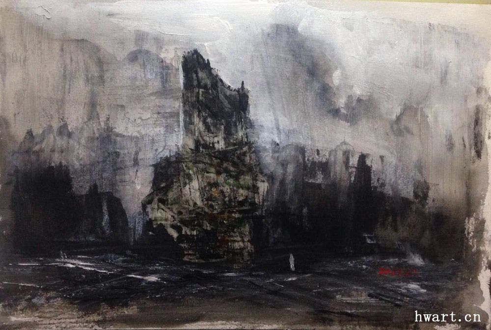 造境,這是我從明華老師的繪畫中理解的,境由心造。這個造特別好,可以把自己的感情自己的內(nèi)心用境表達出來,但是,造境真的需要很強大的思想底蘊的,是幾十年繪畫所積累的經(jīng)驗,是對自然的感悟,是內(nèi)心的獨白,是常年寫生的經(jīng)驗。有了這些積累才能慢慢的學會造境。我們每個人的人生經(jīng)歷,內(nèi)心情緒,精神境界連接我們視覺上記憶中的印象,用獨特的寫意手法創(chuàng)造出的畫面境界就是最動人的那個點。