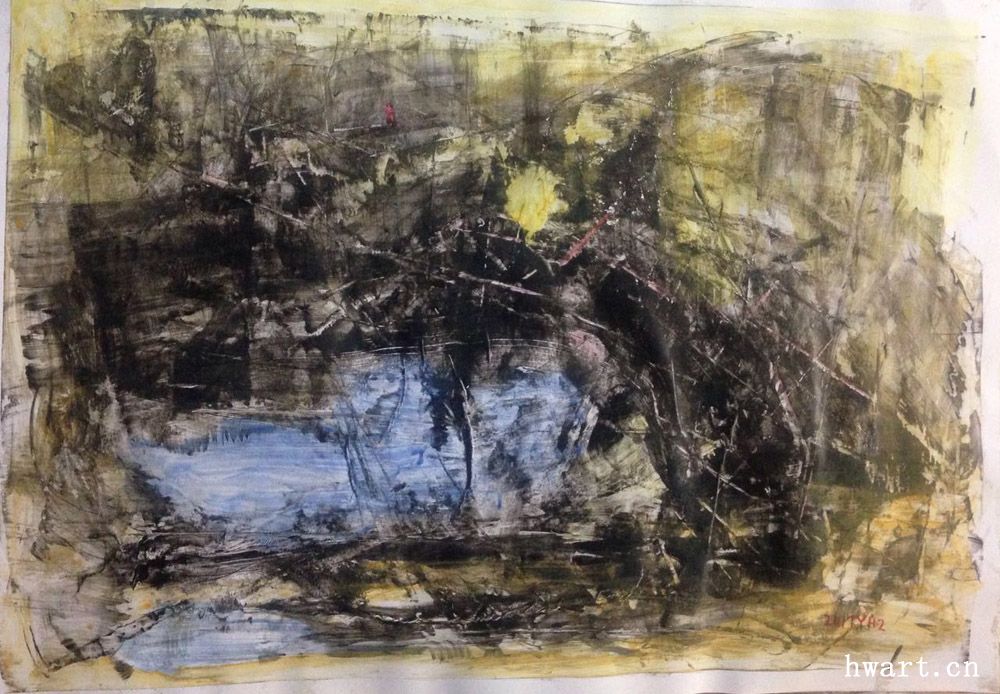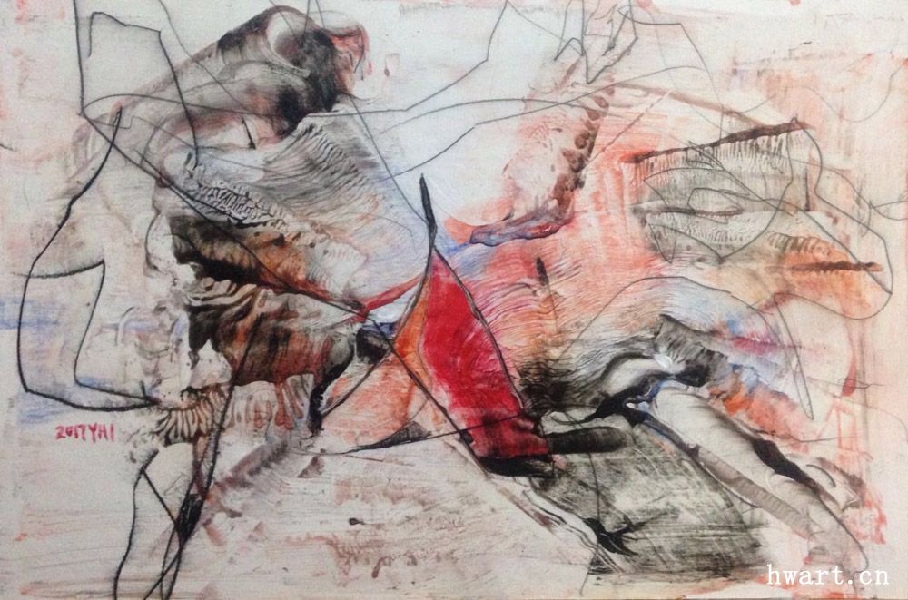 表現(xiàn)性繪畫,有人說應(yīng)該叫抽象,但其實不然,細細品看,會驚奇的發(fā)現(xiàn)里面有具象的事物。 明華老師常說,不管什么畫,里面總會有實的東西也會有虛的地方。正如他不喜歡一定要把一張畫分出個什么寫實,抽象,印象。 第一次聽到老師講到表現(xiàn)性繪畫時,我就被吸引,再看到老師作畫時的神態(tài),用筆的爽快和流暢,那種忘我,那種置身世外,讓我深深的震撼了,這才是繪畫,這才是繪畫的魅力。