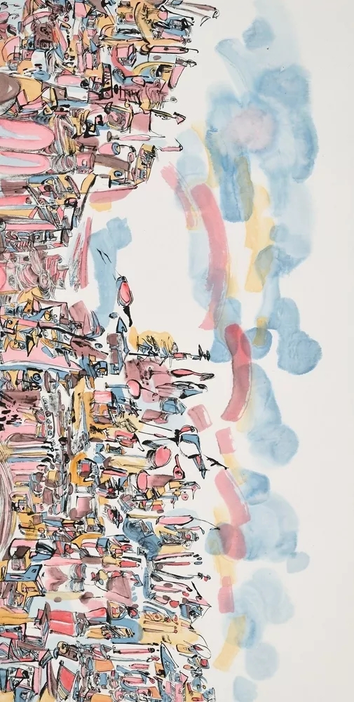 這些作品,它們仿佛是畫家扔給世人的梯子,籍此,在去往畫家神秘?zé)o垠的內(nèi)心世界時,就有跡可循.雖然線條雜亂,塊面綜錯,但山巒依稀,峰壑已顯.方寸之間,已把遙遠(yuǎn)的心靈之山呈現(xiàn)到觀者眼前。