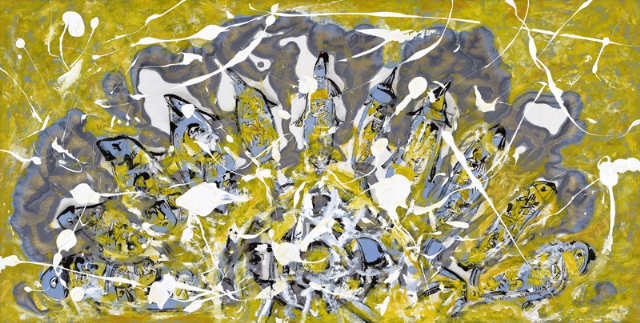 我常常想起美國魯伯特.格林特主演的電影《哈利波特》,其情節(jié) 的懸疑,影音的風(fēng)暴以及真人的魔幻,開創(chuàng)了電影視覺盛宴的新途徑…我認為宋莊藝術(shù)家馮開蘭就是哈里波特式的散發(fā)思維在繪畫語境中實現(xiàn)自我的創(chuàng)造者,她所涂鴉的水墨實驗在機械與現(xiàn)實之間尋找到了一條恰當?shù)某雎?,正?0世紀哲學(xué)家古德曼認識到了藝術(shù)語言的獨特性,認為藝術(shù)的關(guān)健不是表達對象,而是表達方式。顯然,馮開蘭的藝術(shù)的呈現(xiàn)和詮釋在作品中得到很好的統(tǒng)一,并且能貫穿她人生的所有經(jīng)歷和回憶,她一些作品在某個空間不斷地上漲,堆積,最后消失…這種意象就像詩人特朗斯特羅姆中的詞不斷地變幻,展現(xiàn),最后呈現(xiàn)出空白與虛無。而他另一些色彩斑斕恣意撥灑的作品,則讓我想起美國女詩人畢肖普的詩:“碩大的葉片上水銀的葉脈,那些漣漪,撲向,碼頭側(cè)岸…”,當然,我更欣賞她的,還有一些作品,把水、墨、色、情緒壓在某個空間,像糜爛的城堡,又像流淌的欲望,它不止藝術(shù)層面的解讀,某方面則喑合一種社會學(xué),以及心理意識的揣測。誠然,藝術(shù)畢竟是視覺與讀者心靈深處的最后共震,誠如黑格爾非常自信地指出:“我可以肯定地說,藝術(shù)高于自然,因為藝術(shù)美是由心靈產(chǎn)生的和再生的美,心靈和它的產(chǎn)品比自然和它的現(xiàn)象高多少,藝術(shù)就比自然高多少”…值得幸運的是,我想黑格爾這句話,是對馮開蘭和馮開蘭藝術(shù)的雙重肯定。