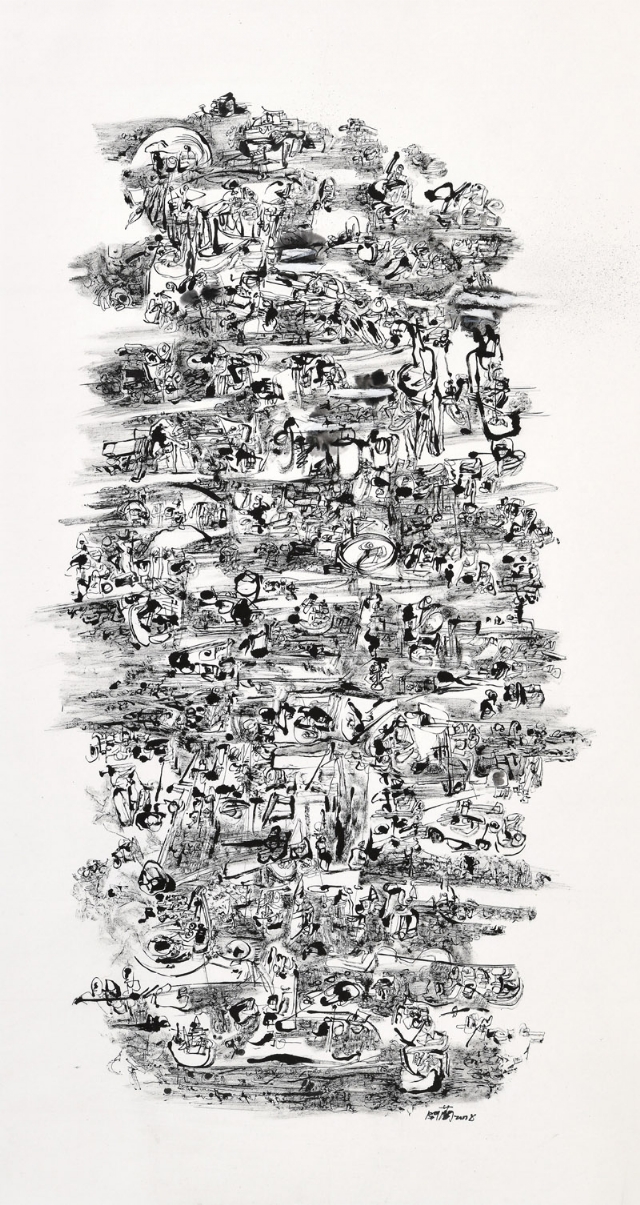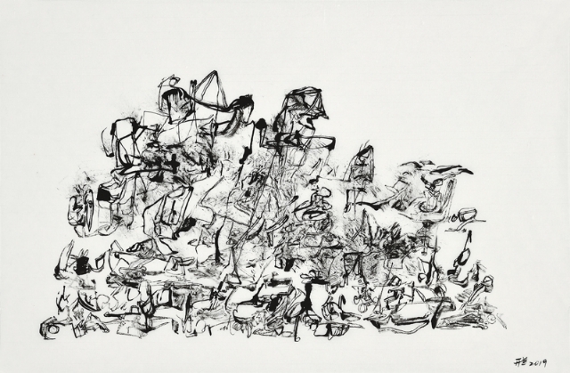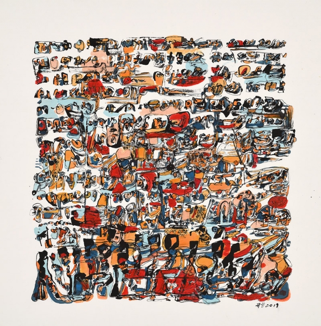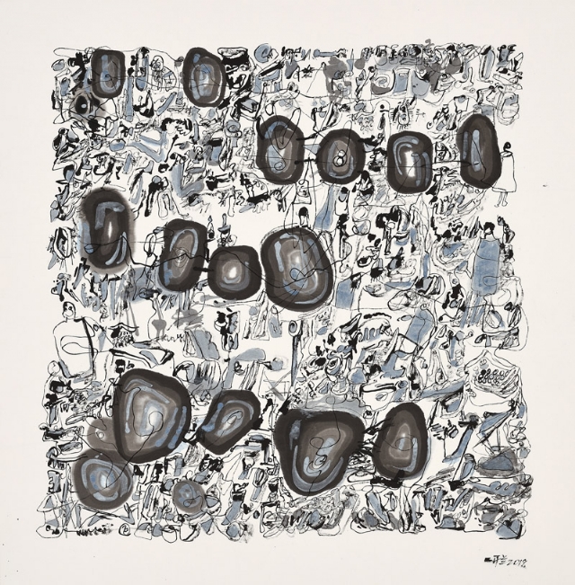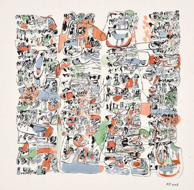 這些作品,它們仿佛是畫(huà)家扔給世人的梯子,籍此,在去往畫(huà)家神秘?zé)o垠的內(nèi)心世界時(shí),就有跡可循.雖然線條雜亂,塊面綜錯(cuò),但山巒依稀,峰壑已顯.方寸之間,已把遙遠(yuǎn)的心靈世界呈現(xiàn)到觀者眼前.