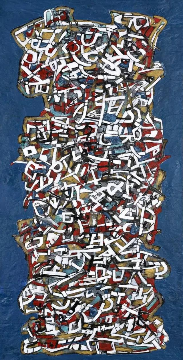 馮開(kāi)蘭是大連的書(shū)象學(xué)派黃埔戰(zhàn)士,曾經(jīng)的機(jī)械工程師,她癡迷地給童話里的每個(gè)角色能縫制出絢麗的服飾來(lái),她曾經(jīng)隱藏在荒村中求師琢磨油畫(huà),而她的女兒遠(yuǎn)走德國(guó),在海風(fēng)拂郁的布萊梅古城里攻讀藝術(shù),她變賣(mài)了房子投奔魏館,成了黃埔一期的書(shū)象派藝術(shù)家。挑燈夜戰(zhàn),苦臨古碑;撕豪沏墨,織構(gòu)心圖。蠶豆大的怪字亂石鋪街,我定義其為神奇的小楷,色符線咒揖錯(cuò),野壑荒椏蝶喧,將你羽化,拋墮云端?!榜T氏魔塊”如外星床械,呼嘯盤(pán)空,金屬般樂(lè)音裂錦煙壤?!耙粋€(gè)魅影移動(dòng),火把跳蟻,我的窗戶敞著,眼前是黑蛾堆疊的山巒,月光瀉在潭水銀色鏡面上……”開(kāi)蘭的札記引我入境,而她的辯駁不亢與詩(shī)詞偶賦的韻致共聞。這樣一個(gè)藝術(shù)家,她靈魂的格架已顯,匹配不屈的斗志,以及似是天賦的制造手腕,她能成器,弄不好還是個(gè)大器,一座旖旎的峰巒,春云卷,秋雨澆。