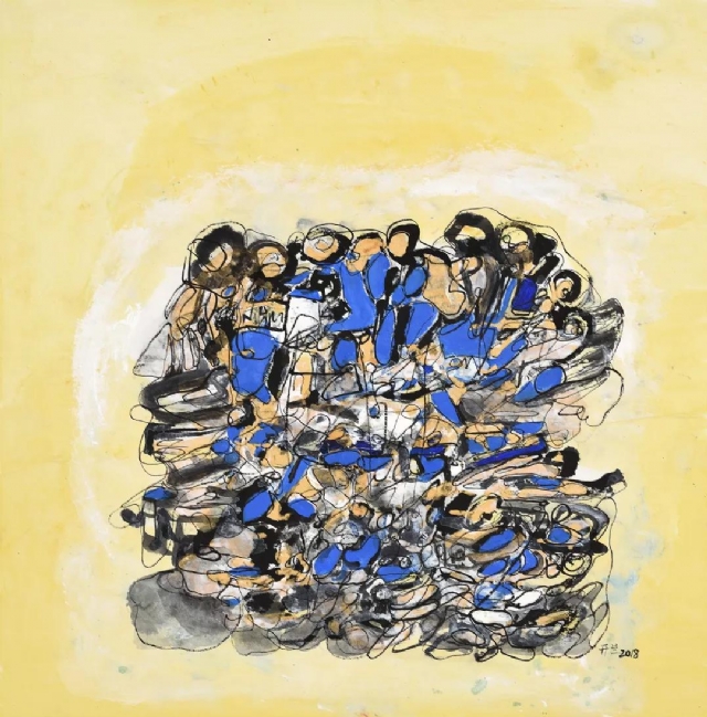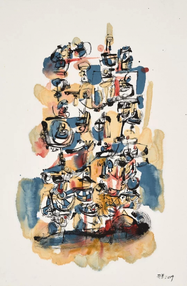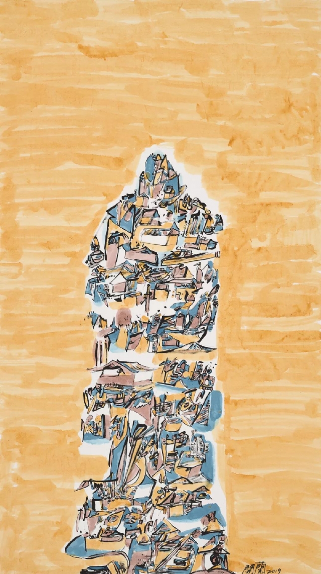 這些作品,它們仿佛是畫(huà)家扔給世人的梯子,籍此,在去往畫(huà)家神秘?zé)o垠的內(nèi)心世界時(shí),就有跡可循.雖然線條雜亂,塊面綜錯(cuò),但山巒依稀,峰壑已顯.方寸之間,已把遙遠(yuǎn)的心靈之山呈現(xiàn)到觀者眼前。