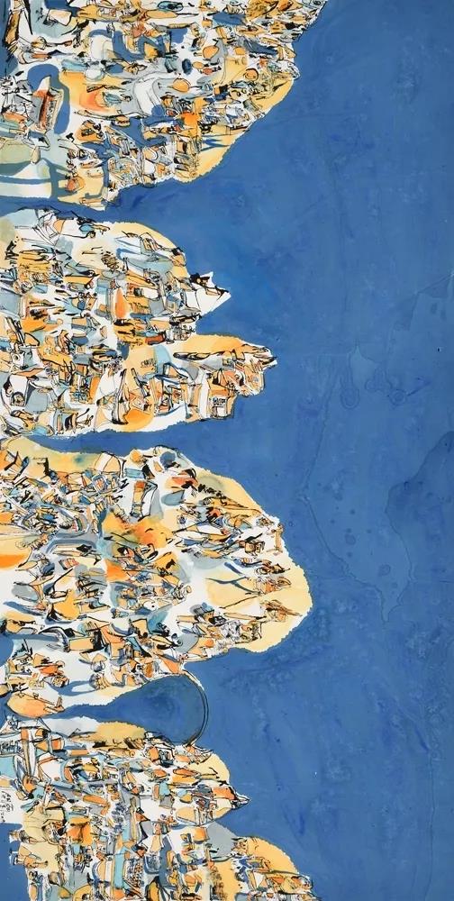 (請(qǐng)橫屏觀看)藍(lán)世界 宣紙 墨 丙烯 66x120cm