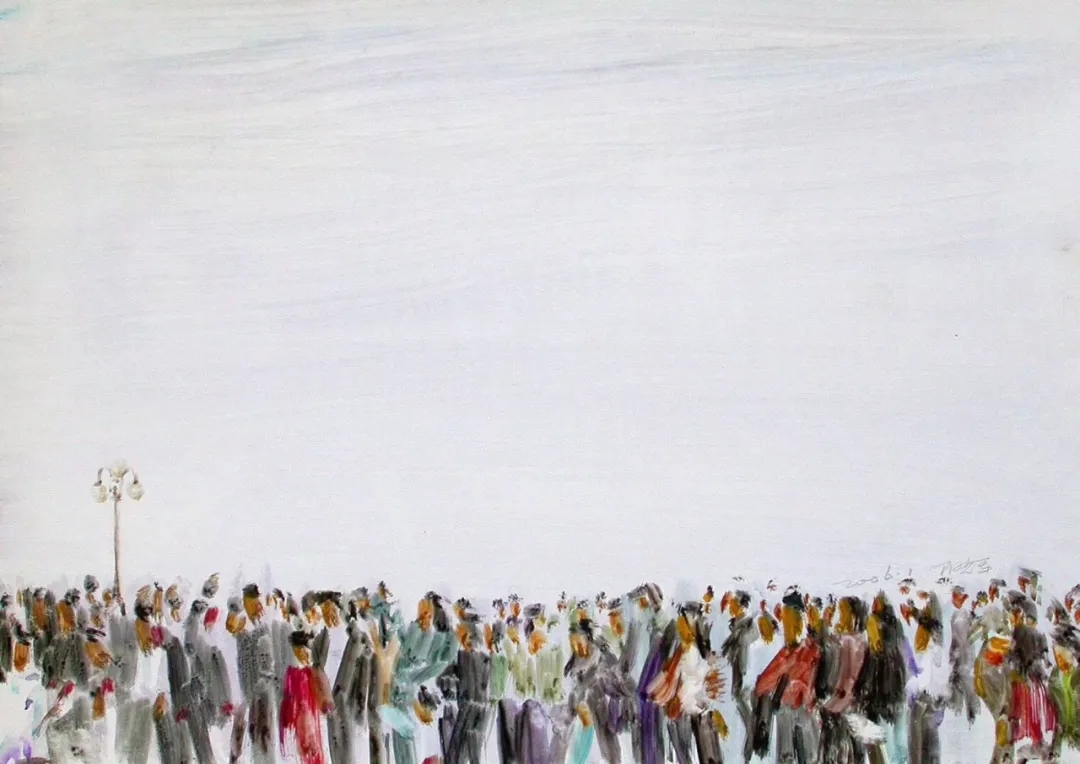 Gestural and energetic depictions of mankind painted with deep humanity and insight into simple daily life are juxtaposed by other works that are grand compositional views where the ?gure is reduced to only the element used to dramatic e?ect forming vistas and shapes- almost abstract. It is between these two points of view that Yang Hui delights the eye of the fortunate appreciator.