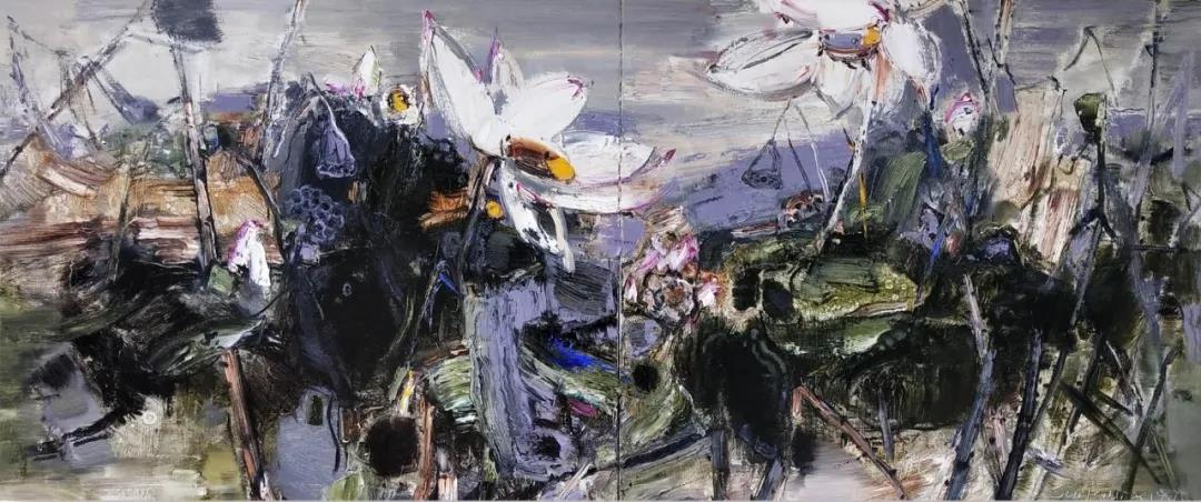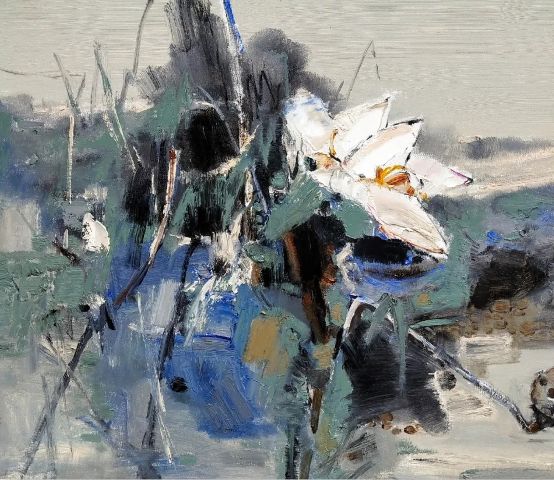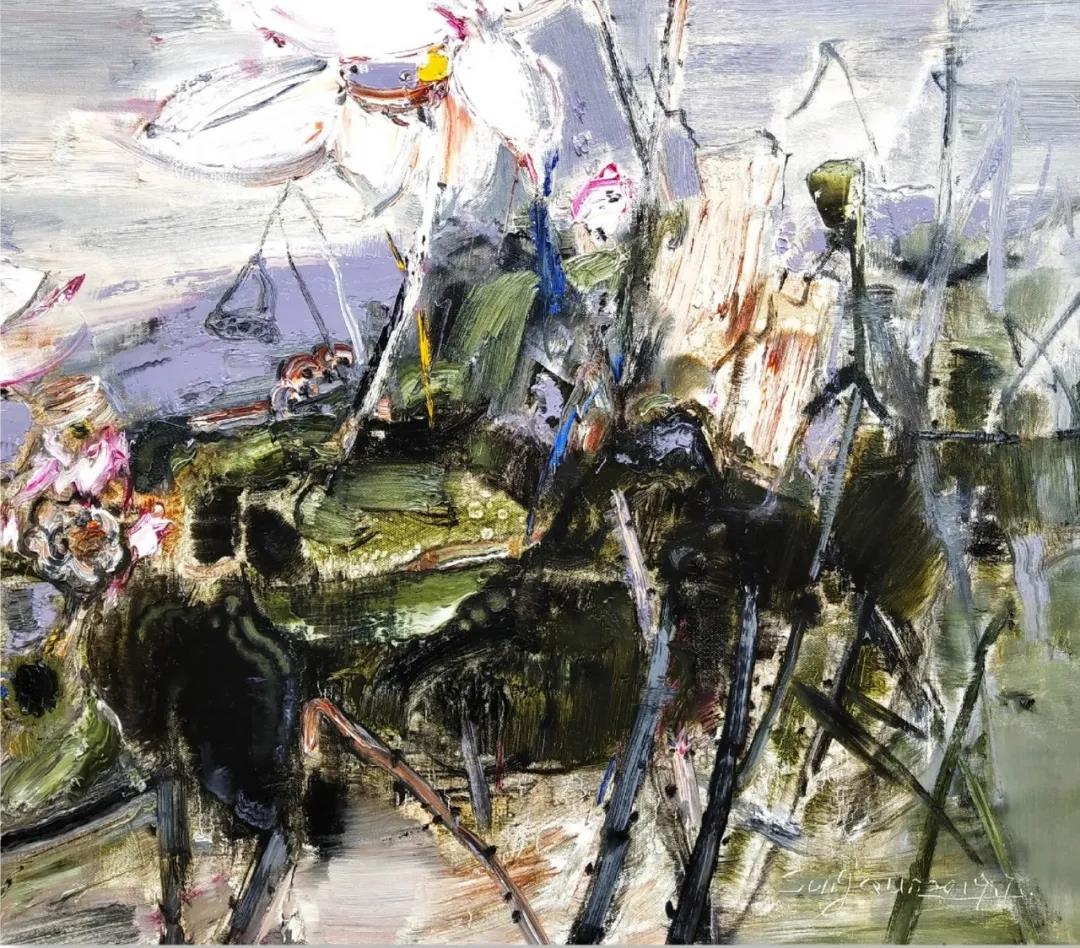那些在陽光下閃爍的色彩;流動在天空如綢緞般的云;那縱橫交錯恣意流淌的線條;那點(diǎn)線面交織的厚薄有序;極目遠(yuǎn)眺的快慰以及寄情山水的情懷,是畫意亦是詩情,更是畫家想要呈現(xiàn)的藝術(shù)語言。它們?nèi)諒?fù)一日,帶著一種生長的力量,迫不及待的要呈現(xiàn)在畫布之上。