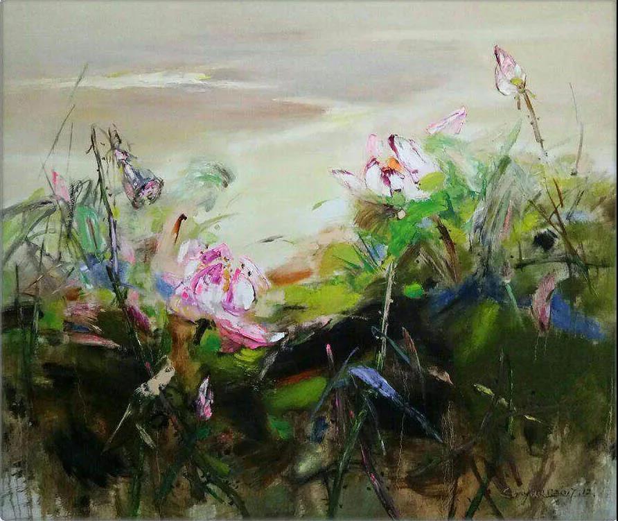 當(dāng)村莊與山巒融入畫面,當(dāng)一抹抹色彩一筆筆線條一道道筆痕建立在畫布之上,你已是它的主人了。把自己融入其中,在廣袤的田野,在清幽的云水之間。這時候才明白什么是真正的風(fēng)景,什么是源于生活且高于生活的風(fēng)景,什么是主觀的東西,什么是意向的風(fēng)景。才明白風(fēng)景與照片之間的差距與距離。才呼吸到了什么是真正的泥土味道。才知道手中的畫筆,是無法把自然之美表現(xiàn)的完美。