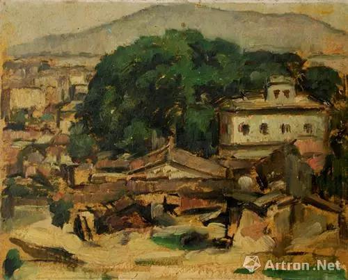 家鄉(xiāng)的冬日(24X19cm)1934年1934年謝投八學滿歸國在廈門美專工作期間,依然筆耕不綴,經(jīng)常進行風景寫生和肖像創(chuàng)作。作品《家鄉(xiāng)的冬日》作于1934年回國后,在風格上顯示出留法時期大膽粗獷的筆觸,這種筆觸帶有中國大寫意山水畫的韻味,色彩簡練概括;而且,畫面虛實和節(jié)奏變化松緊有序,反映出他在構圖和捕捉自然景觀第一印象的審美追求。