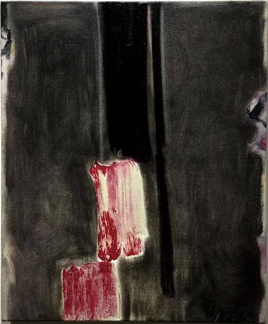 趙葆康 看圖識字系列28號 一群豎勾 77x54cm 亞麻布上綜合材料 2018