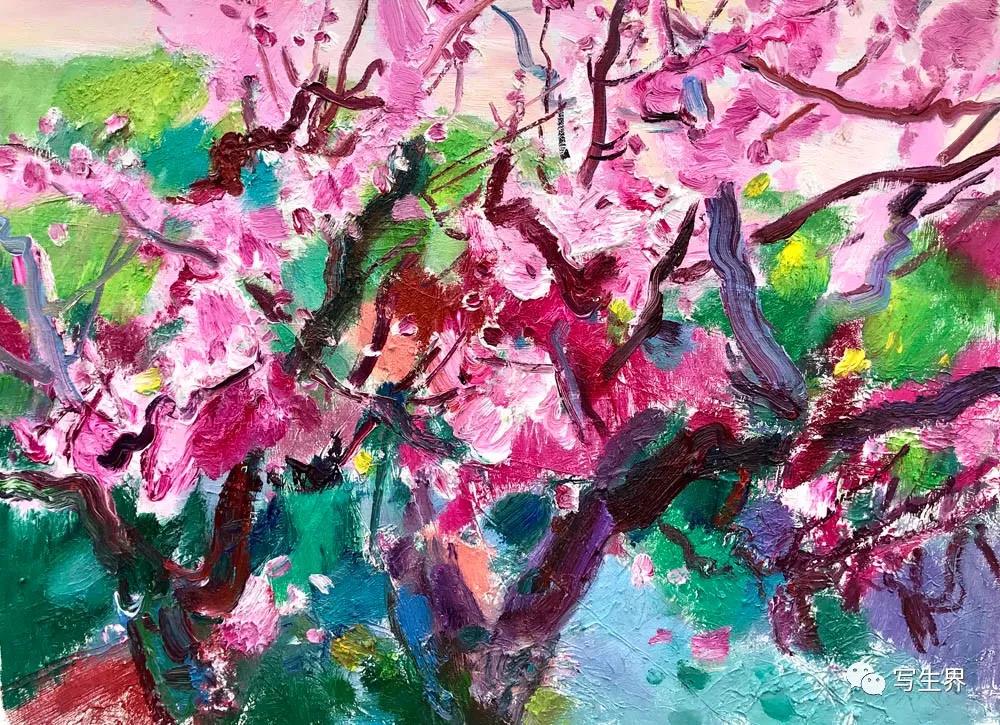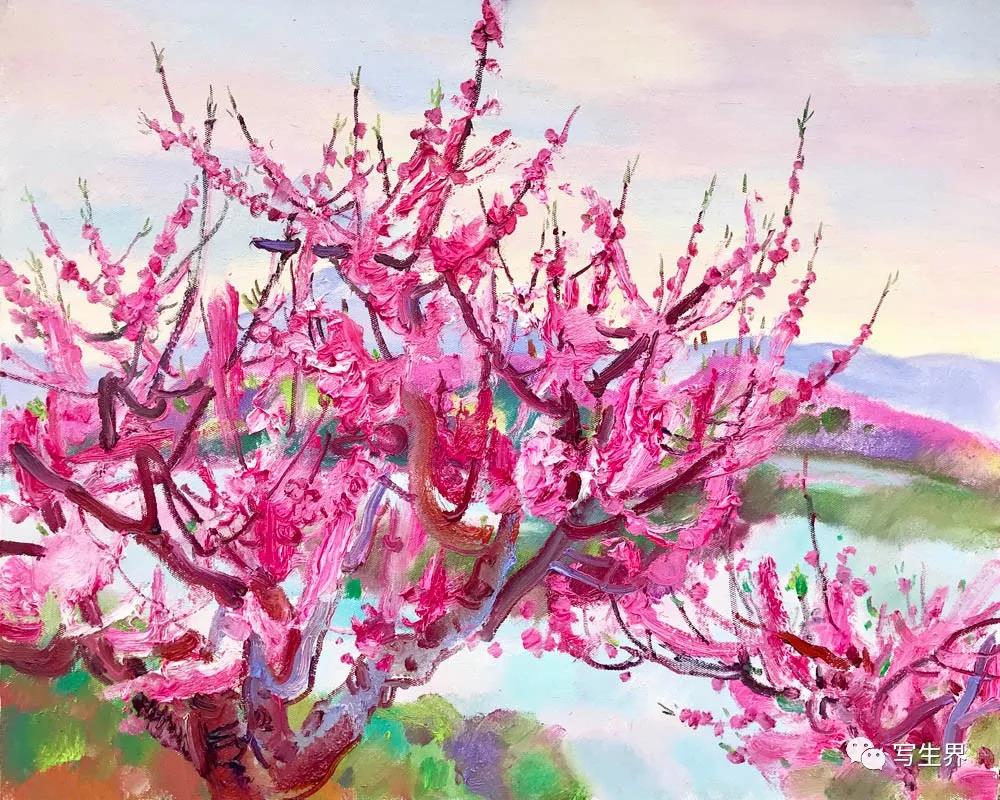 水塘邊的桃花65X80