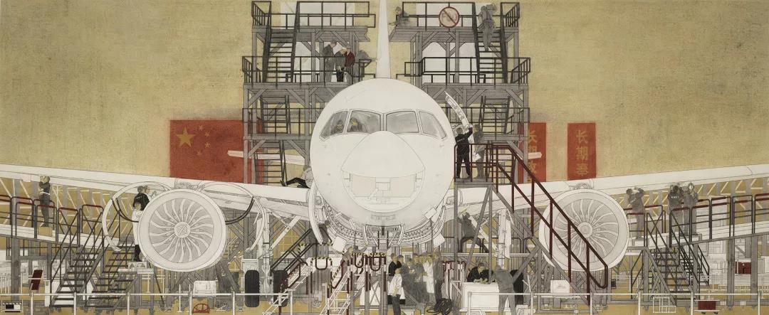 《中國制造走向世界——C919大飛機》 206×503cm 范春曉 2019