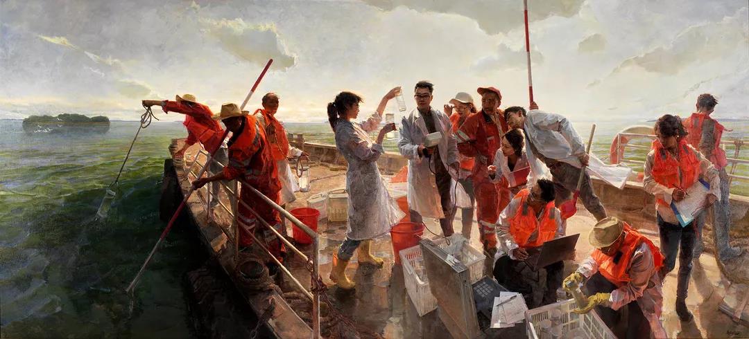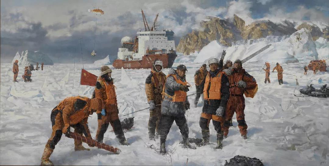 《極地科考·雪龍?zhí)栺傔M北冰洋》 400×200cm 時衛(wèi)平 2019