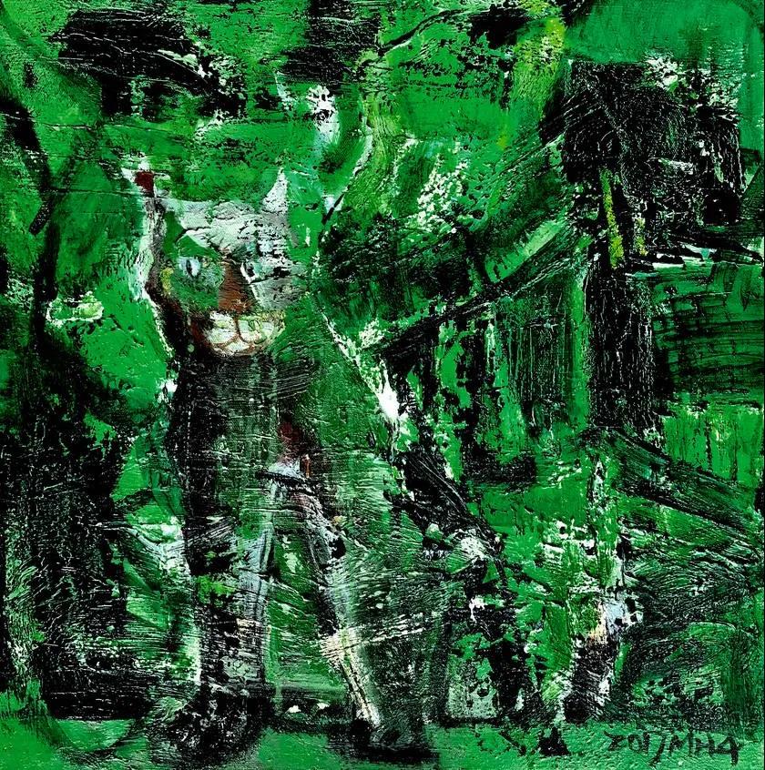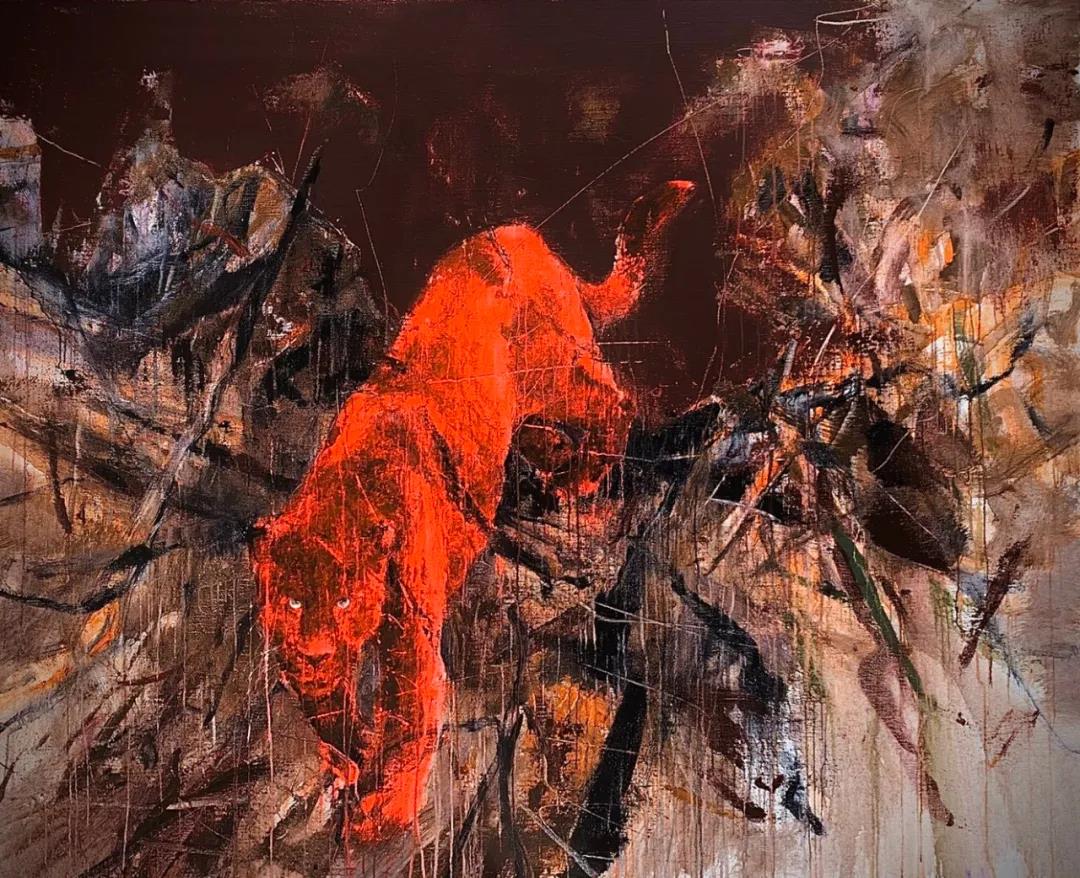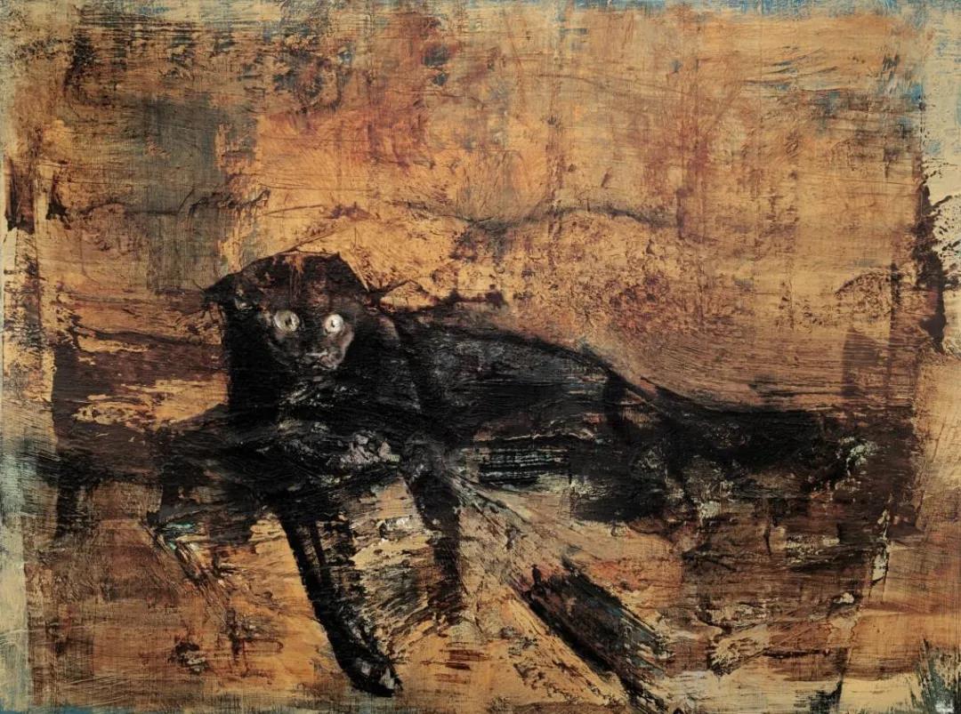 他的創(chuàng)作主題源于自然而不墨守成規(guī),通過(guò)形、色和筆觸的“交纏”彰顯主觀(guān)概念。進(jìn)入他的題材世界,一群“大貓”便猛地闖入眼簾。以貓為題材的作品屢見(jiàn)不鮮,而明華兄的“大貓”顛覆了以往畫(huà)家們畫(huà)貓時(shí)通常賦予它的安靜、溫順和慵懶,間或也還表現(xiàn)出一絲曖昧的印象,他反其道地賦予了貓一股雄渾之氣和逼人的靈性,頗具“大王”下山之勢(shì)。他的風(fēng)景畫(huà)游走于意象和抽象之間,借現(xiàn)實(shí)之境進(jìn)行心理空間營(yíng)造,抒發(fā)潛藏于內(nèi)心的情緒,表現(xiàn)具有個(gè)人觀(guān)察視點(diǎn)的洞見(jiàn)。而他的人物畫(huà)創(chuàng)作,依然以表現(xiàn)性的語(yǔ)言?xún)A注于畫(huà)面,富有力量感的色塊構(gòu)成,體現(xiàn)出形態(tài)的張力,通過(guò)多種工具和綜合材料經(jīng)營(yíng)出來(lái)的線(xiàn)條與塊面讓畫(huà)面回蕩激情之美。凡此種種,彰顯著他的品格追求和情感專(zhuān)注,畫(huà)面在他筆劃勾點(diǎn)揮潑之間呈現(xiàn)大寫(xiě)的氣魄。他在“意”而不輕“形”,追求形意合一,蘊(yùn)含東方哲學(xué)理念,一筆一劃,建構(gòu)著屬于他的哲思型藝術(shù)品格。