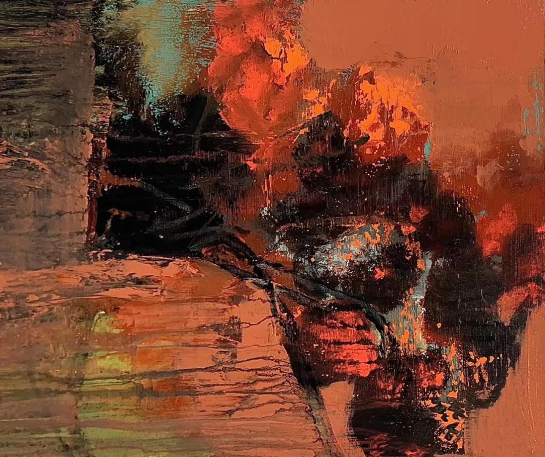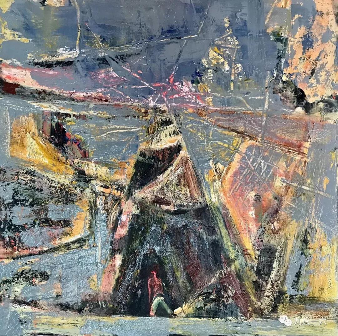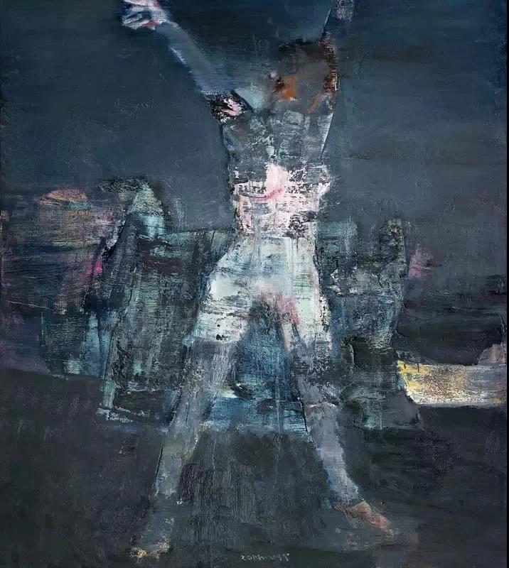他堅(jiān)守自己所篤信的創(chuàng)作理念,沒(méi)有刻意去挖掘作品附和社會(huì)現(xiàn)狀的主題意識(shí),而是自然而然地通過(guò)形態(tài)、色彩和筆觸的調(diào)動(dòng)傾注他的激情和向往。這過(guò)程中充斥著他的思考,思考又充斥于被他反反復(fù)復(fù)層層疊疊不斷涂畫(huà)甚至覆蓋的畫(huà)面。一種飽滿(mǎn)、一種力度和一種激昂宣泄著他的藝術(shù)激情。畫(huà)里畫(huà)外,保有他對(duì)整體格局和氣象的運(yùn)籌帷幄,將氣象萬(wàn)千,凝為筆底煙云。