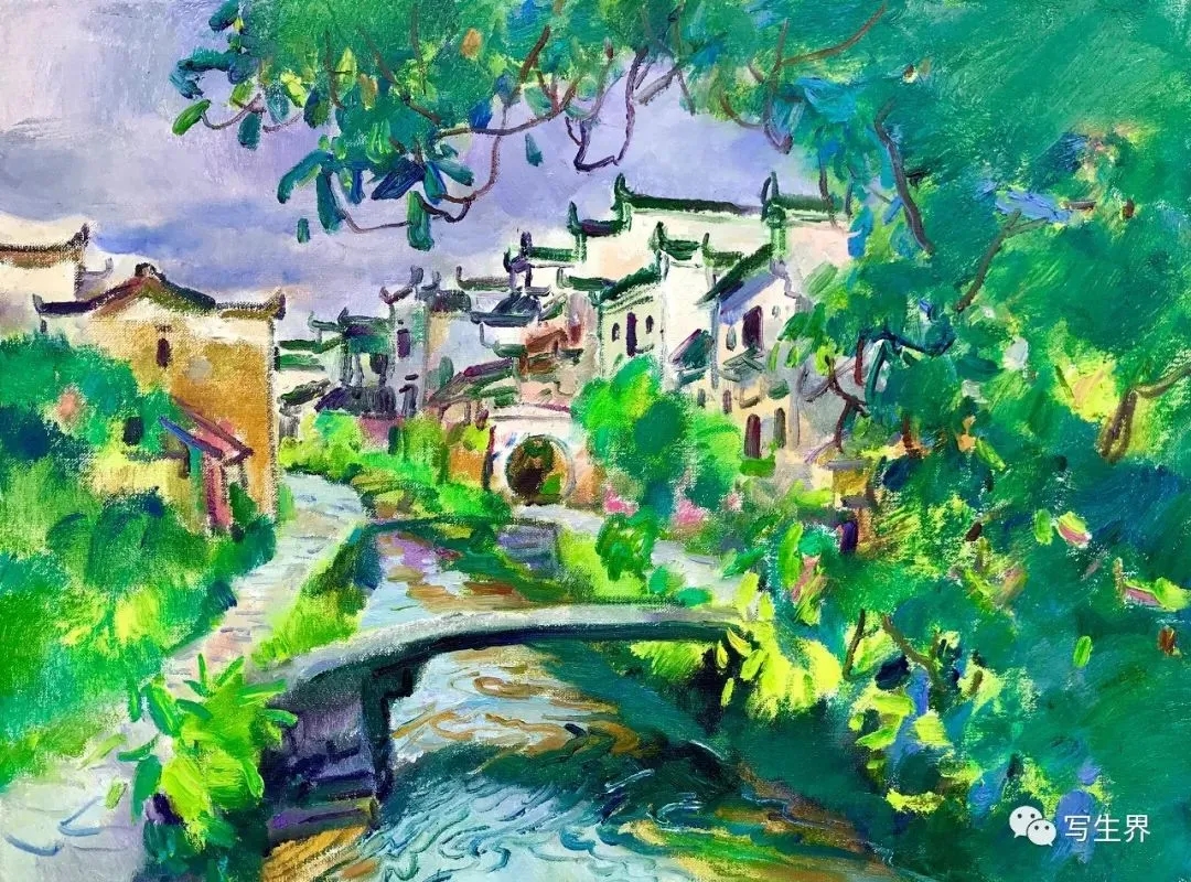 宋衛(wèi)東的個人藝術之路,在前人的啟迪中展開。他多在畫面中表現風景、山水,對他而言,風景畫不只是一種體裁或題材,而是一種精神歸宿,是實現自我的一個通道。在面對山水自然和建筑樹石的臨場寫生中,他以“寫”的方式提煉色彩和形象,把感受到的意象轉化為對事物本質的塑造,在單純的寫生基礎上增添文化自覺意識的內涵,使畫面帶有中國繪畫思維的烙印。