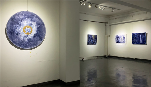 在樂山,李江無疑是一個異鄉(xiāng)人。無論他在這里是否已經(jīng)成家立業(yè),無論他是否已“被動或者主動”的融入這座城市的藝術(shù)人文圈子,無論他是否已然能夠操著“半洋不土”的當(dāng)?shù)胤窖耘c人交流,甚至無論他是否創(chuàng)作了大量與“大佛文化”相關(guān)的繪畫作品。此次展出的《禪意》系列作品便是緣于此,“在樂山生活了十八年,經(jīng)常面對樂山大佛,面對夾江千佛巖,面對這些盛唐時期的佛像石窟,感悟歷史的風(fēng)云變幻、滄海桑田才有些今天的這了些作品……所以,畫《禪意》系列作品也有好些年了。至于想要表達(dá)的深意,我并沒有什么明確的核心理念,只是覺得現(xiàn)代社會人心普遍比較浮躁,欲望太強。我覺得人們更需要清凈、簡潔、平淡的意識思維,需要認(rèn)真修行和感悟,用禪的智慧明朗地照亮心念,自我心凈?!崩罱绱私榻B到。在他系列作品《佛·藍(lán)蓮》系列中,那朵時隱時現(xiàn)的“藍(lán)蓮”貫穿始終,無懼時光荏苒,無畏滄海桑田。與其說李江在畫佛,不若說他在畫“我”。浮世輪回,或若寂滅、或若動蕩,一佛安坐,便已望斷前世與未來。這宛若“真我”對于宿命的抗辯,又或“真我”某種超脫后的明悟。斑駁之下,如若抵達(dá)、又或背離。一朵藍(lán)蓮沉浮,無聲訴說一個異鄉(xiāng)人“畫佛如我”,內(nèi)心對于佛性之于塵世的雙面人生。
