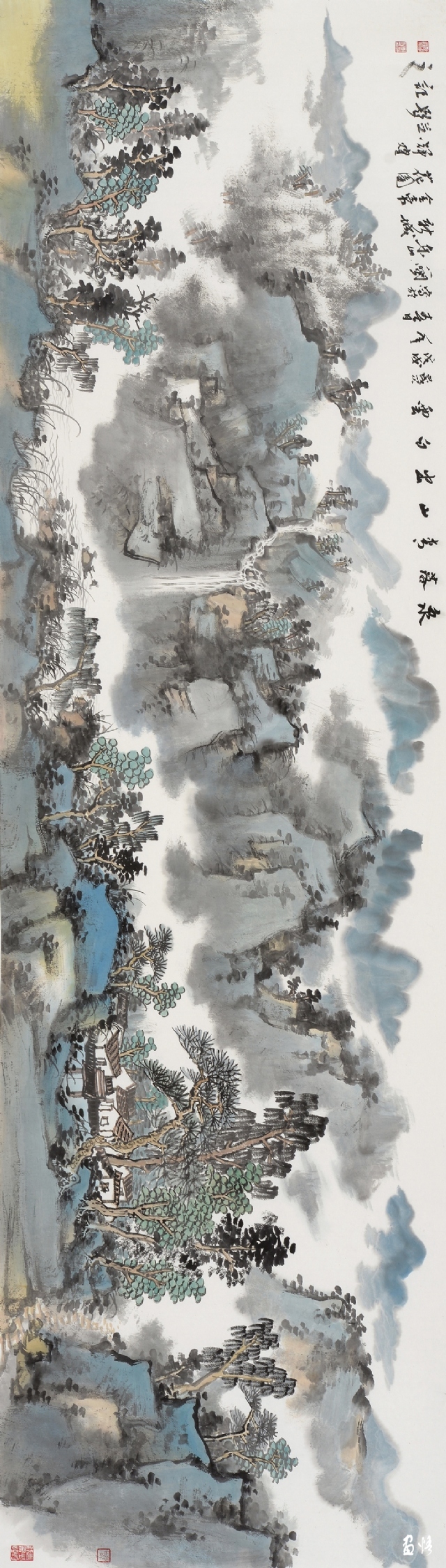 《泉落青山出白云》80cm×280cm紙本設(shè)色2018