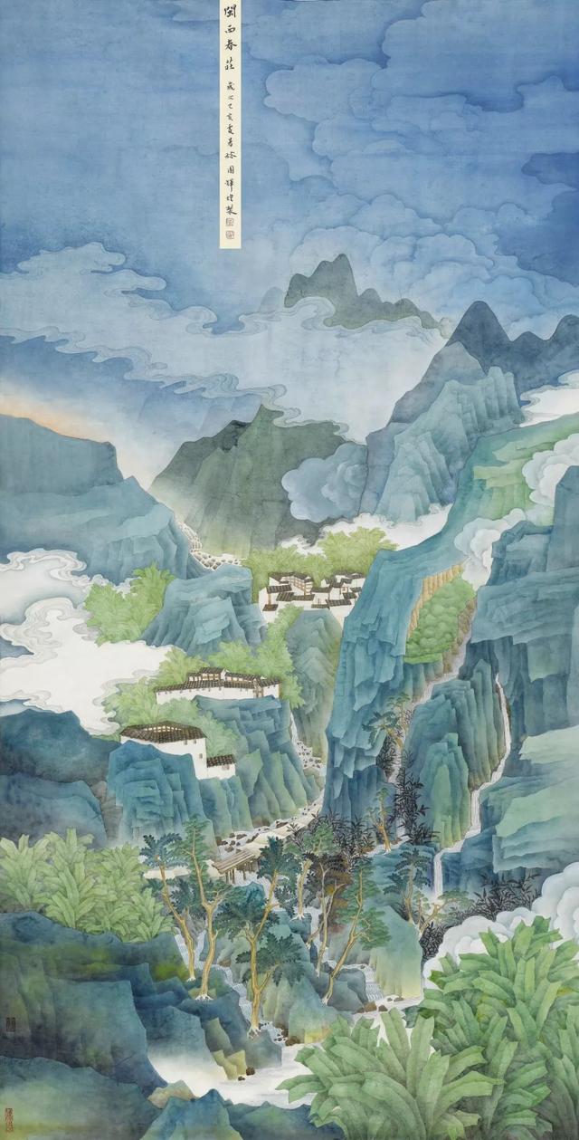 《青山行不盡 綠水去何長》180cmX70cm紙本 水墨設(shè)色2019