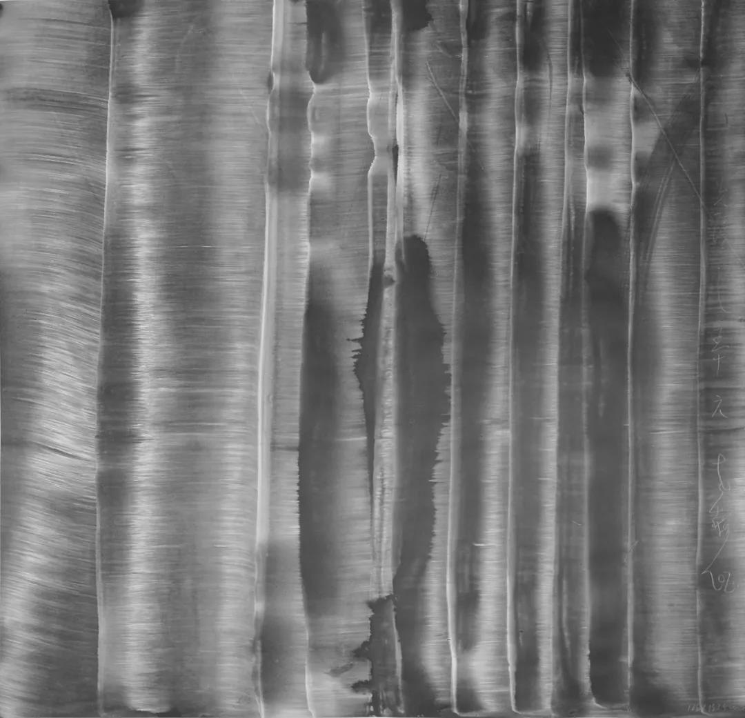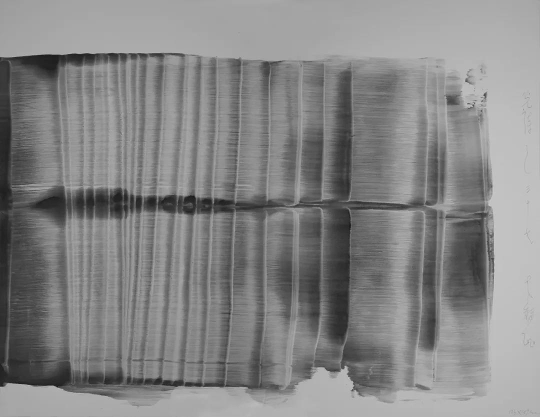 這些作品,很多看起來就如同一本靈光之書,光明之書,無字啟示之書,這些光絲之為“絲語”,也是哀悼的“詩(shī)行”,“好似”神圣的“淚絲”,那些墨暈隱含其間,“好似”不可抹去的淚水。但同時(shí),“光絲”又在召喚未來,在推動(dòng)光波自身不止息地震動(dòng)。這波光如同光明的詩(shī)行,一絲絲,一縷縷,永不止息,恍惚的瞬間凝固,如同永恒生命的歌詠,又好似“如如不動(dòng)”的定力,這是不可摧毀的意志力的見證。