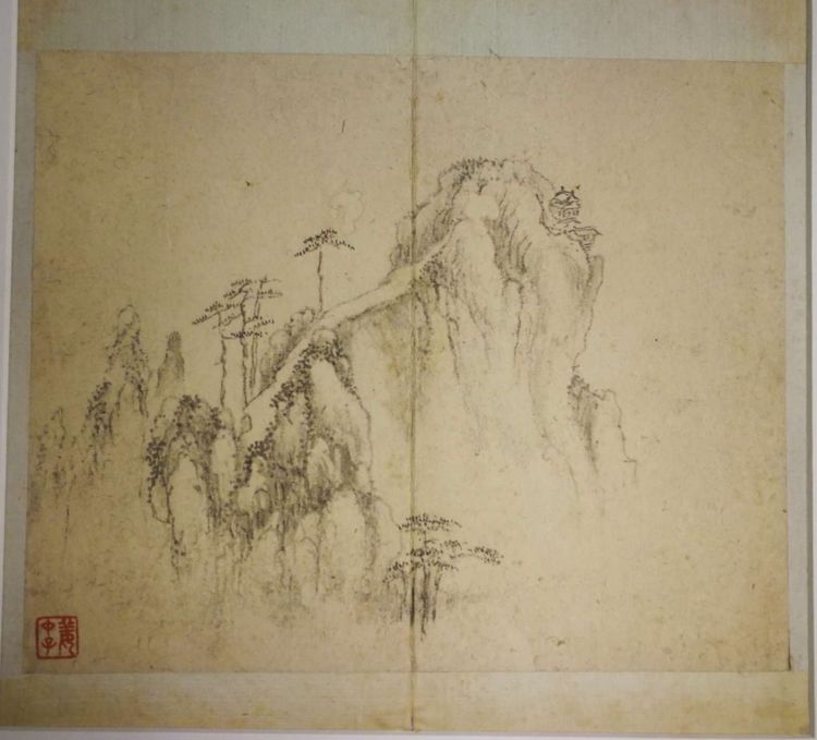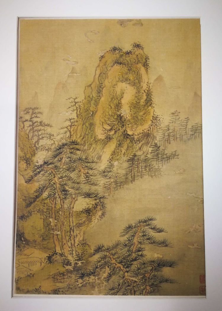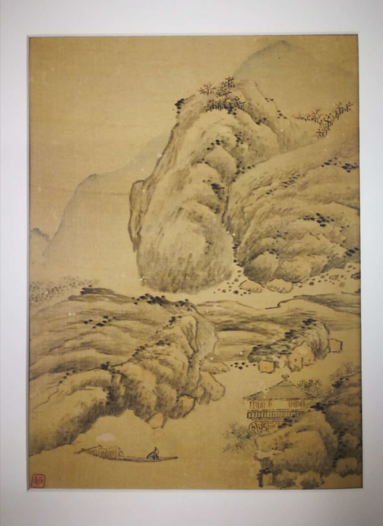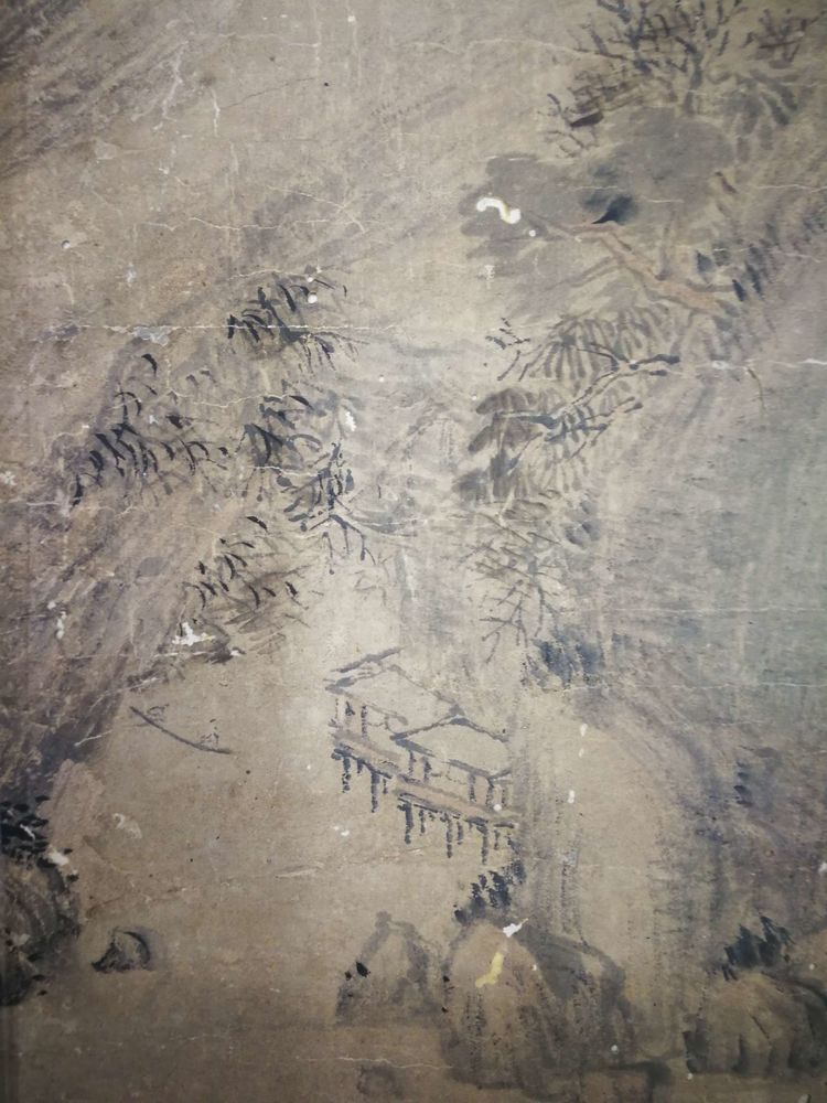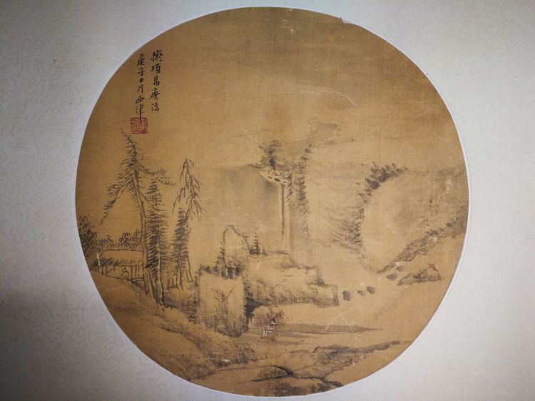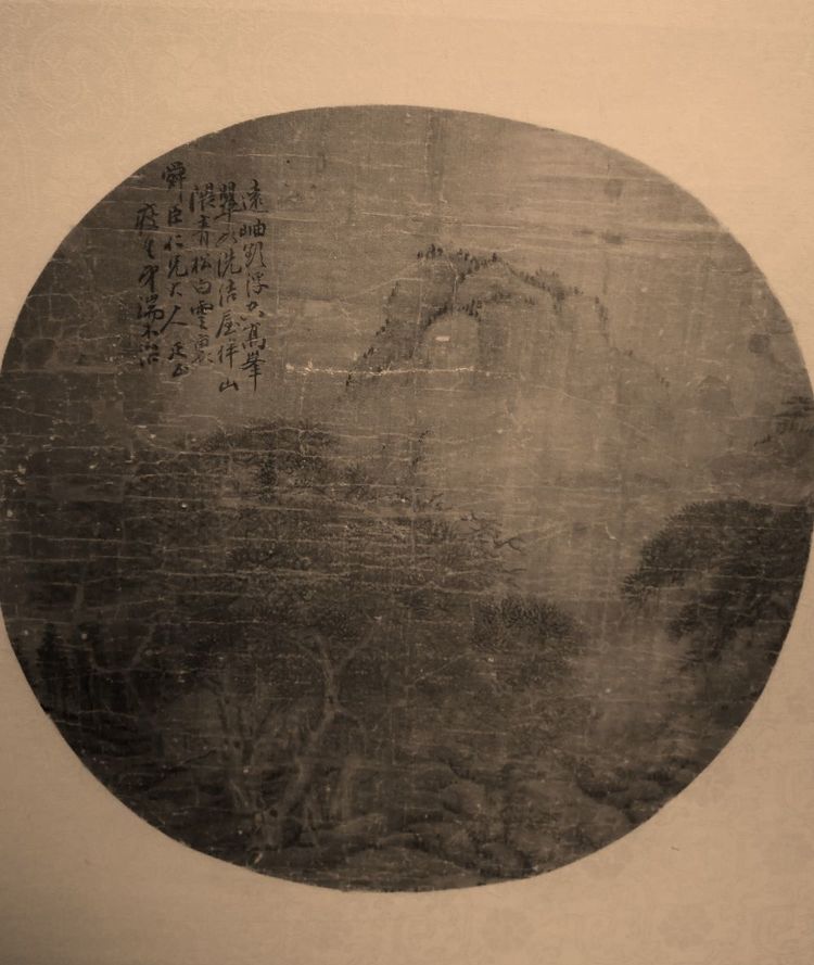 這幅山水團(tuán)扇,氣格極大。讓人想到巨然的大山水,其中苔點(diǎn)十分細(xì)密,讓我觀察很久。