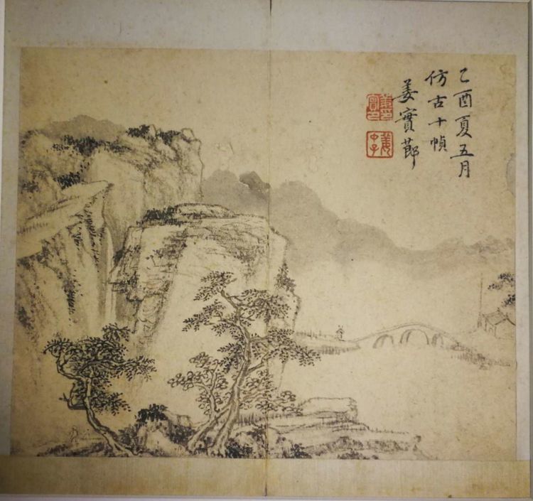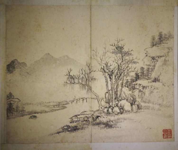 可是作者臨終前,病床上的木心看著屬于自己的美術(shù)館的設(shè)計(jì)圖喃喃地說(shuō)道,“風(fēng)啊,水啊,一頂橋?!蔽易x到這里就想到晴嵐的這個(gè)小品冊(cè)子,我猜戴照(字晴崗,曾見(jiàn)西冷印社所出的趙孟頫《心經(jīng)冊(cè)》有他題跋)當(dāng)時(shí)可能戴孝不出作此數(shù)幀山水。