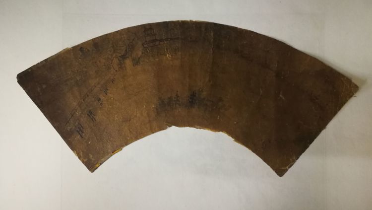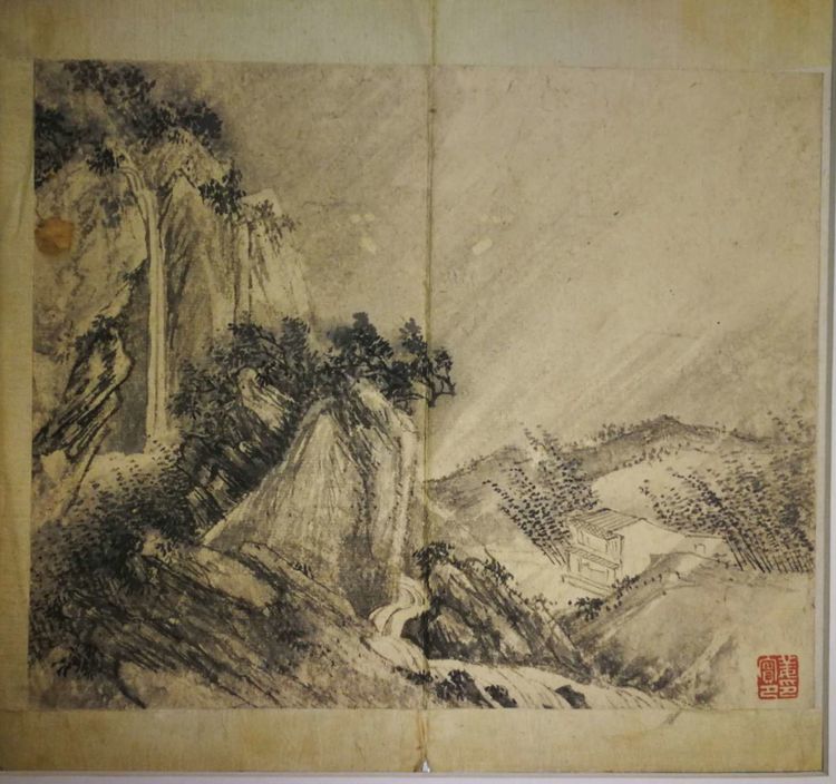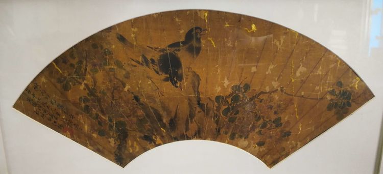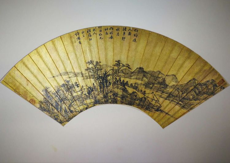 例如,這幅泥金古扇畫(huà)山水是用焦墨畫(huà)法,沒(méi)有用到色彩。