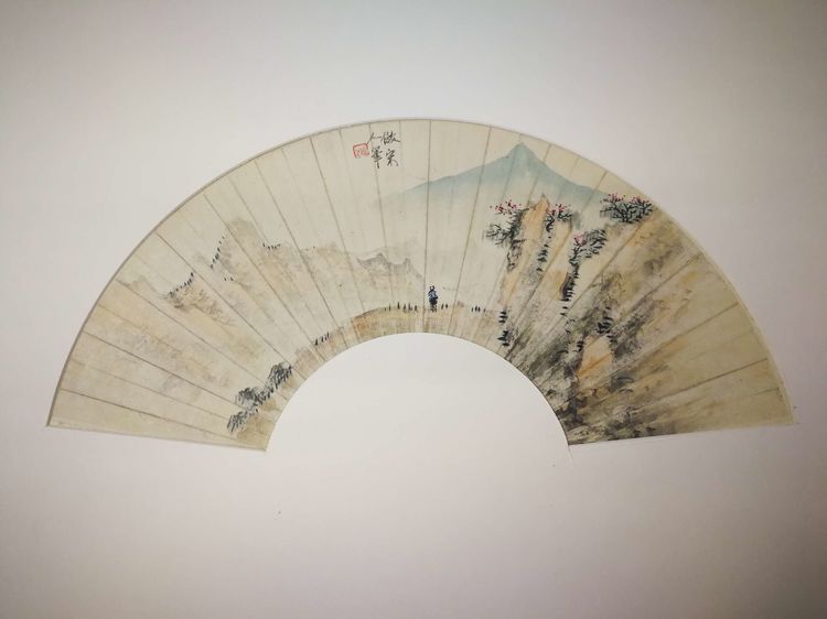 我今天沒(méi)有帶上大畫(huà),只是帶來(lái)幾件中國(guó)畫(huà)團(tuán)扇和小冊(cè)頁(yè)及小品。中國(guó)畫(huà)中團(tuán)扇是一種特殊的題材。