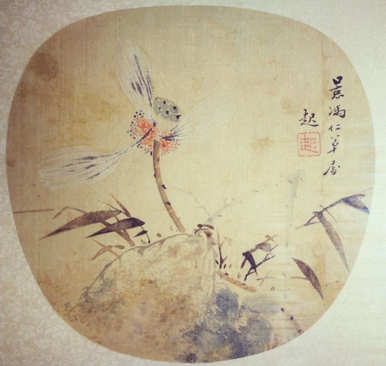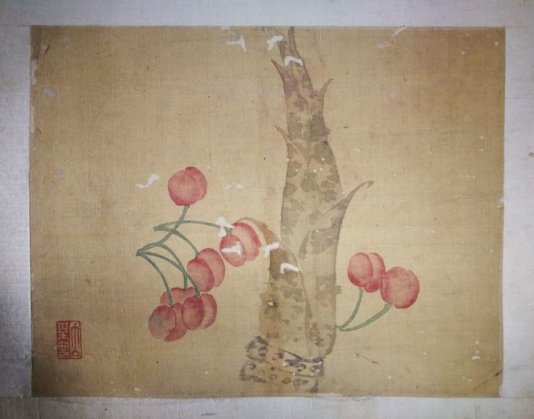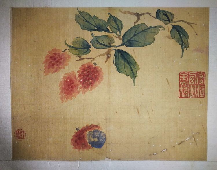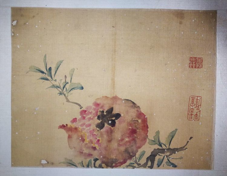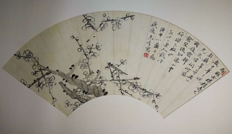 下面這幅上節(jié)課講過(guò)的折枝構(gòu)圖《梅花扇子》也是水墨寫(xiě)意畫(huà)但水份用得高雅干凈。當(dāng)然,中國(guó)古代因?yàn)槿宋暮腿遽尩牢幕难眨诋?huà)中僅僅選擇某一技,某一點(diǎn)入畫(huà),作為折技構(gòu)圖。