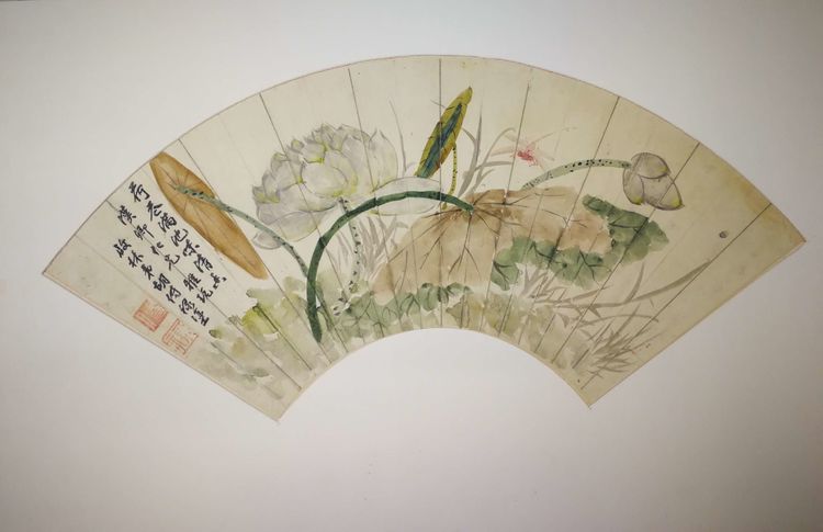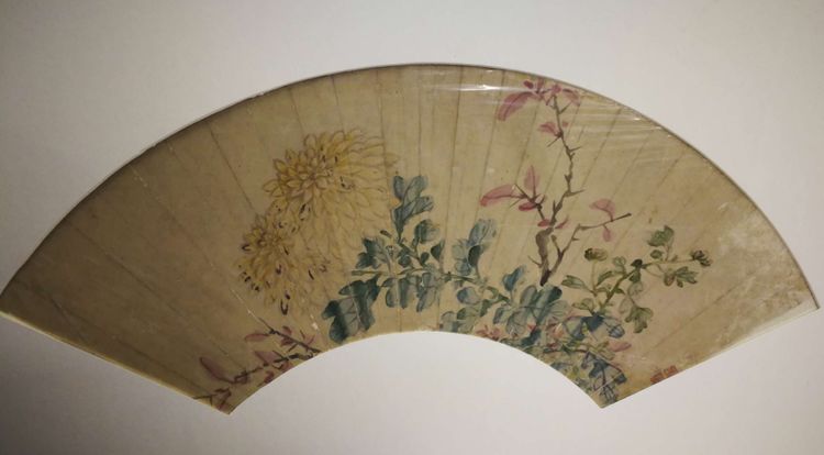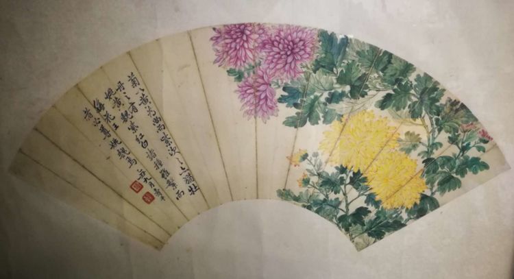 下面我們欣賞幾幅扇面小品中清雅的菊花與高潔的荷花。