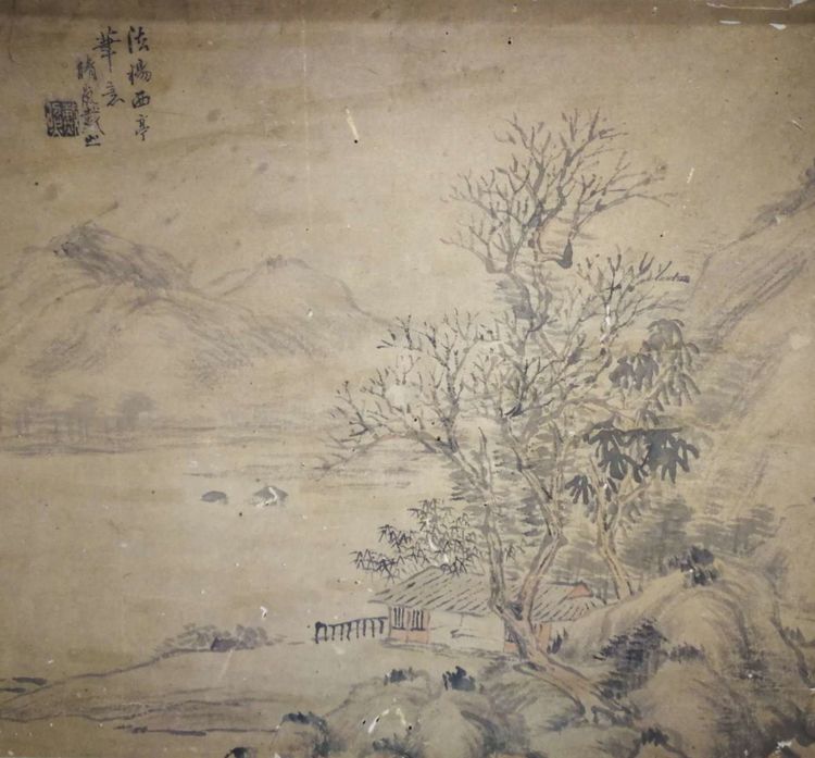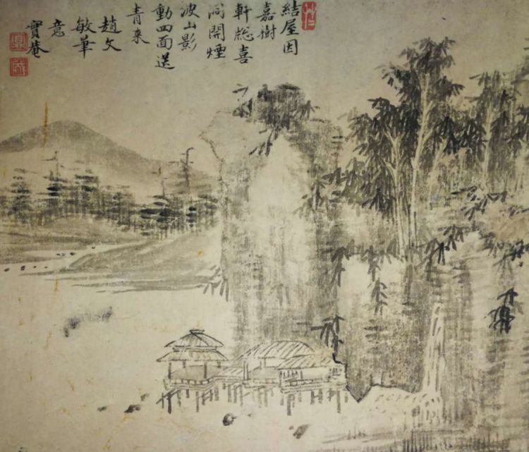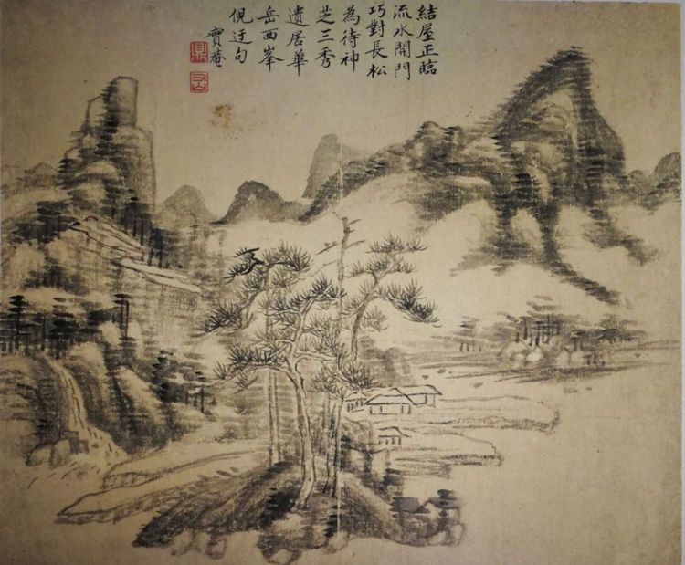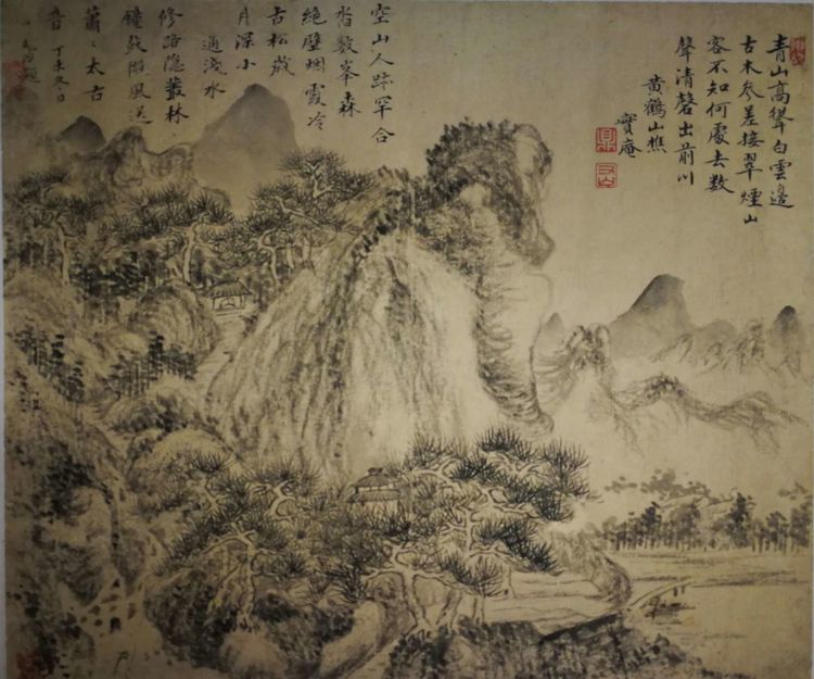 詞人的山水多有繼承古代畫(huà)風(fēng),此疑為明代曹貞吉(1634-1698)號(hào)實(shí)庵,別署鼎成(款)的山水可見(jiàn)詩(shī)詞題跋中的情懷。