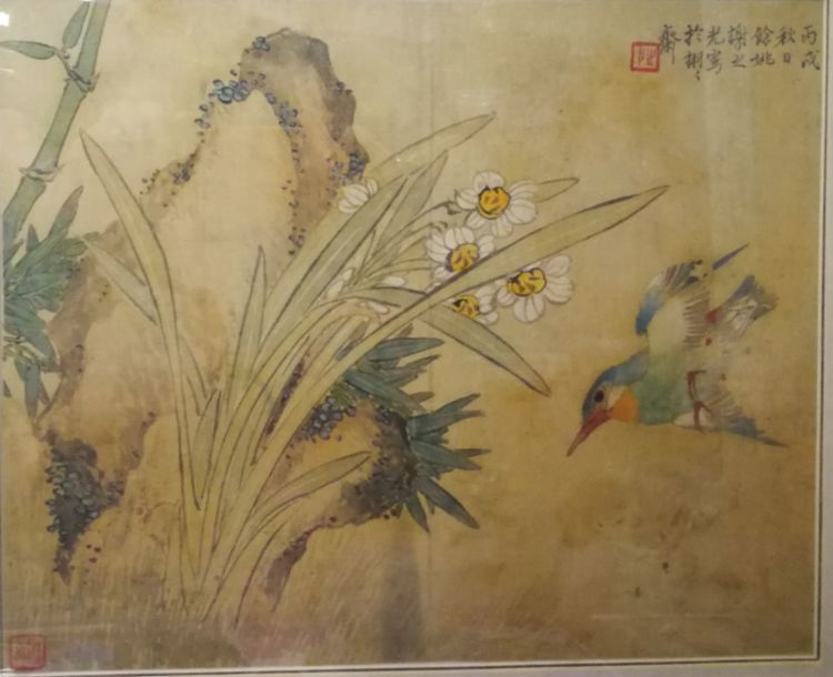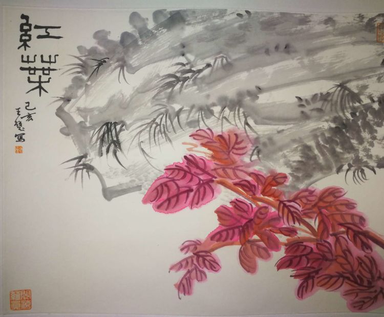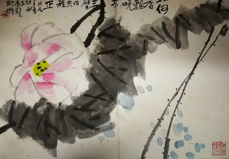 當(dāng)年我到泉州,我們閩南的花鳥(niǎo)畫(huà)家蔡展龍老師為我當(dāng)場(chǎng)畫(huà)的這件小品,簡(jiǎn)單而斜式的構(gòu)圖,墨的疾風(fēng)式用筆與花的鮮艷形成對(duì)比令我印象深刻。