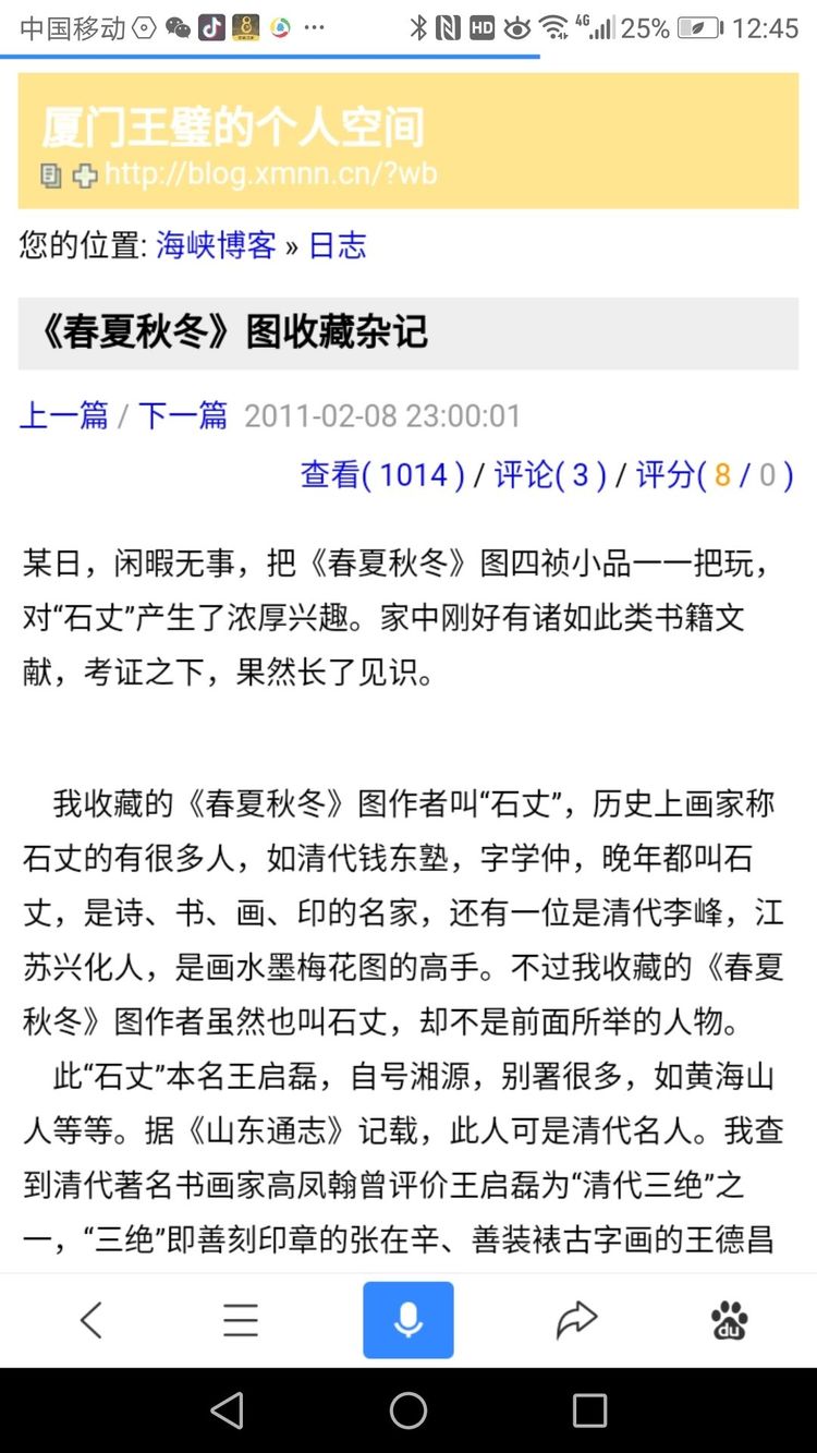 某日,閑暇無(wú)事,把《春夏秋冬》圖四禎小品一一把玩,對(duì)“石丈”產(chǎn)生了濃厚興趣。家中剛好有諸如此類書(shū)籍文獻(xiàn),考證之下,果然長(zhǎng)了見(jiàn)識(shí)。