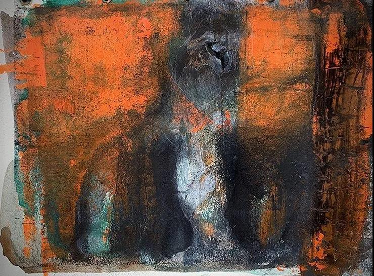 他的作品嚴格說來不是抽象畫,卻要經過一個不斷被抽象的環(huán)節(jié)。當他的情緒凝聚一股氣時,氣借助刮刀進入紙面,好像要刮掉什么,又好像要埋進去什么。難道說作畫是一個不斷被刮去什么又被埋進什么,這個不斷的過程是一個技術呈現,還是一個實驗式求索,好像一場爭奪賽難舍難分。一幅作品的生成不那么簡單,怎么去理解刮去什么繼而埋進什么,特別難以解決刮去那些看得見的什么又埋進那些看不見的什么的問題。