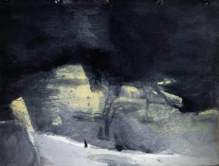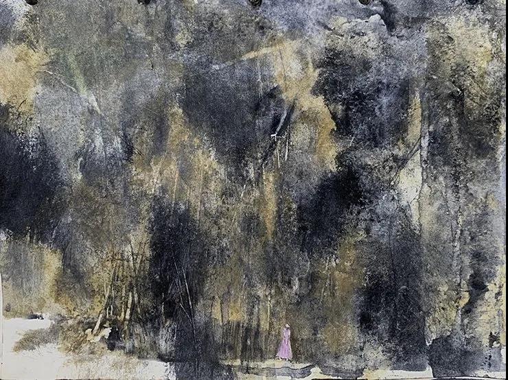 無法預測要經歷多少折騰,更難逆料在哪個瞬間結束,要看他對畫面的滿意度。作品進行過程,離對象的辨識度越來越遠,離他內心想要的感覺越來越近,那些他想要的感覺與內心合拍的那刻,是去掉什么與放進什么達到那審美的激起,一幅作品在激起時完成。他的畫尺寸不大,卻有一個大氣象,好像是宇宙洪荒的一個局部,又好像是無邊無際大世界的一個概觀。心很大,世界隨之大,畫家與作品得到心的印證。