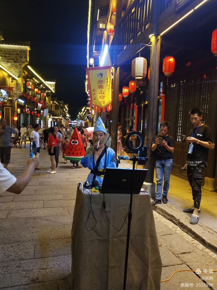 人流如織的古街,歌聲叫賣聲,吆喝聲此起彼伏,時不時的,會隨風送來一陣陣悠遠空靈的古琴之音。一串串穿透力極強的紅燈籠,在夜色的襯托下格外醒目,似乎比星光還要迷人。