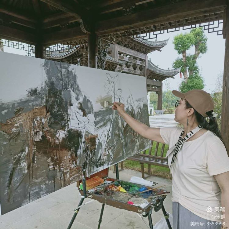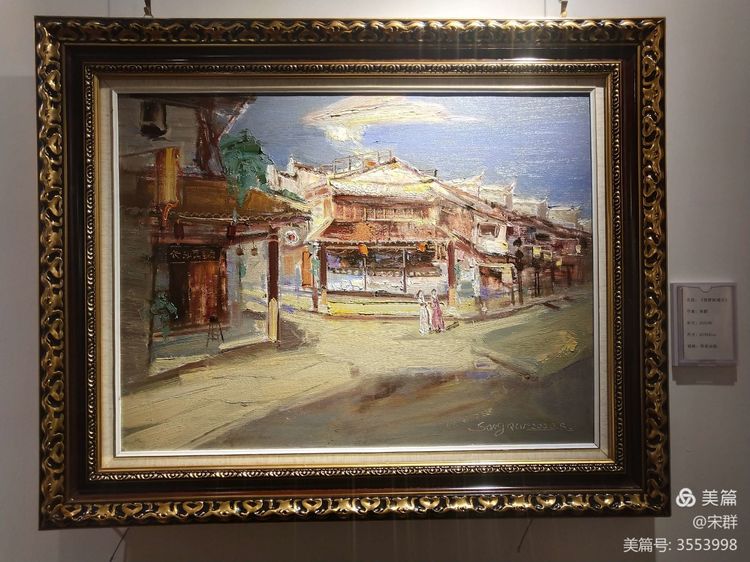 古城的夜晚很明亮,我被月光溶溶下的風物所陶醉。我們幾位初來古城的畫家,在代山老師的建議下,第一回在夜色中寫生,第一次各自用畫筆表現(xiàn)了古城的夜景。當色彩在畫布上流動,我已融入古城,隨著騎樓的起伏變化,點線面的交織,建立著我心中的古城畫面。