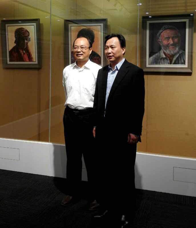 畫家林文德與福建省教育廳廳長黃紅武在畫展現(xiàn)場合影