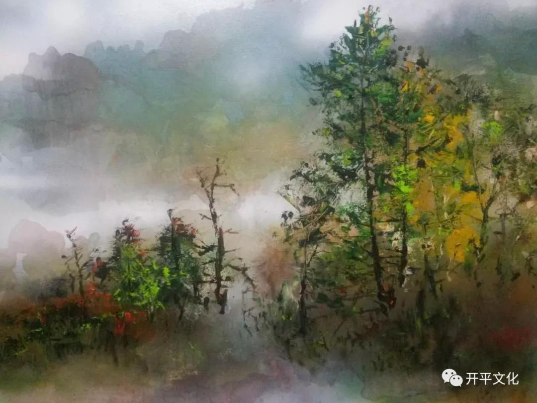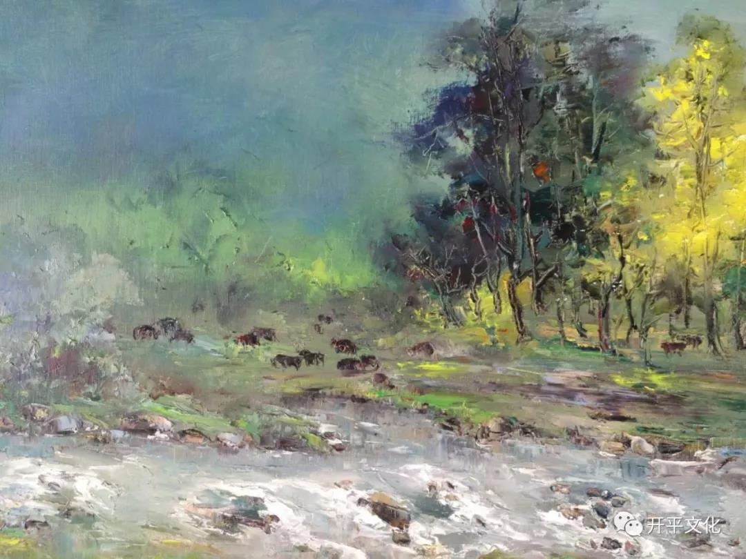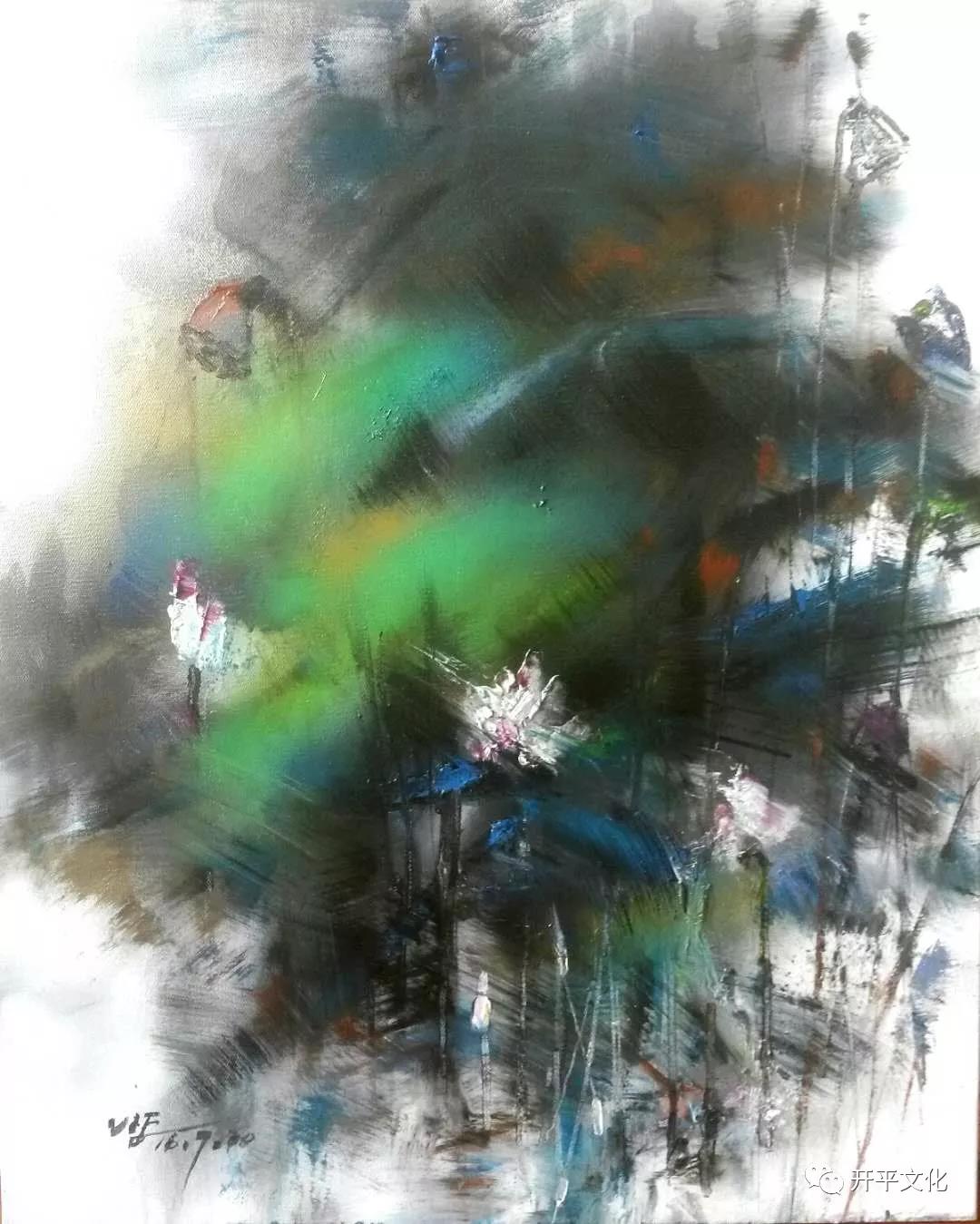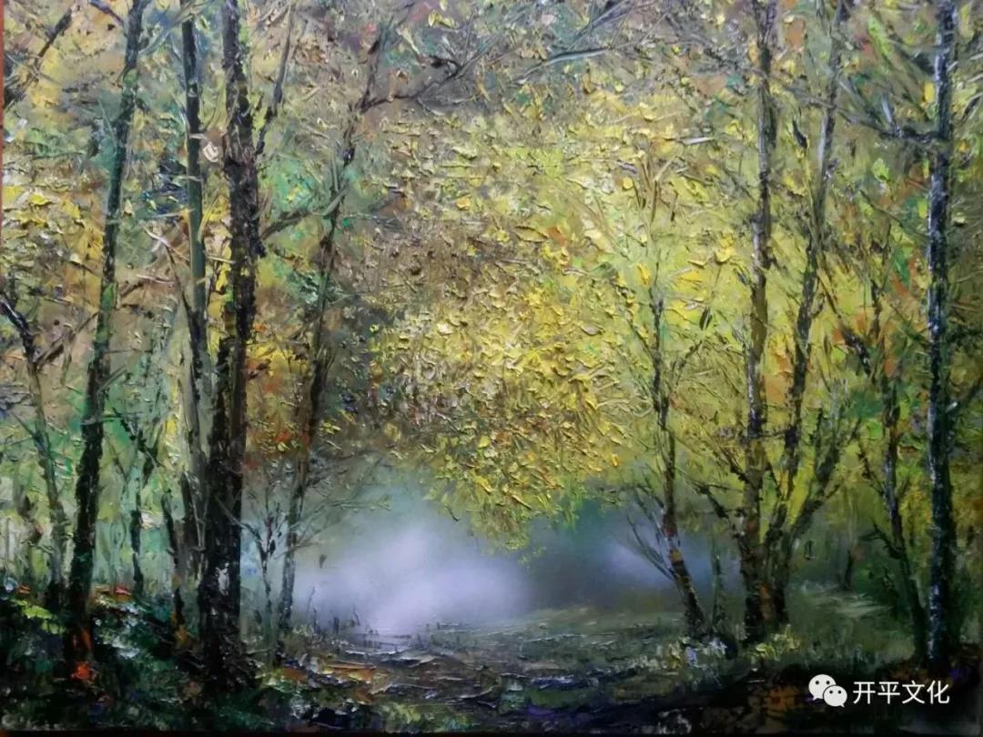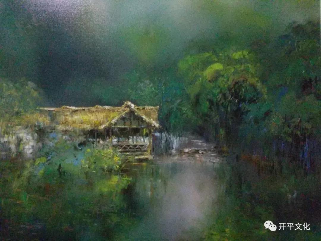在創(chuàng)作上,余劍峰很好的理解到了這一點?;谟彤嫷奈镔|(zhì)基礎(chǔ)之上,利用獨有的技法打破了傳統(tǒng)西方繪畫嚴(yán)謹(jǐn)?shù)臉?gòu)圖法則、光影法則與色彩法則,進而營造出了兼具婉約與豪放,惋嘆與蒼茫,真實與縹緲的東方意韻。