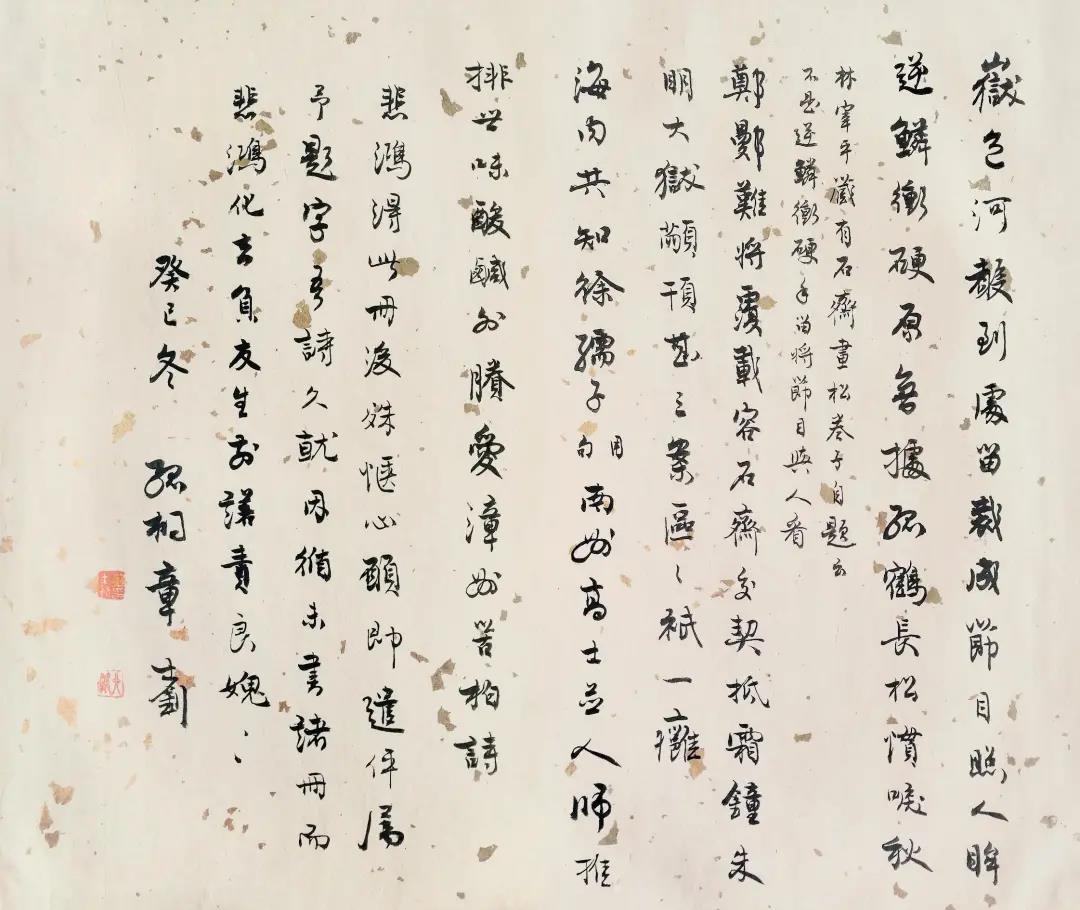 二、章先生詩(shī)跋中表達(dá)了對(duì)悲鴻的懷念與愧疚心情:詩(shī)早就遵囑寫好了,但是瑣事拖延,因循時(shí)久,沒有及時(shí)寫到詩(shī)冊(cè)上去,到冬天時(shí)才題上,而好友已經(jīng)仙去,未能見到所題之詩(shī)。答應(yīng)之事,無(wú)法踐諾于友人生前,因此他才深深感嘆“良愧良愧”,個(gè)中意味,一言難盡。