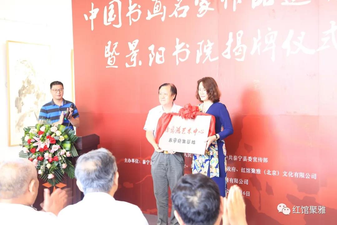 中國現(xiàn)代畫家、中國現(xiàn)代美術(shù)教育的奠基者徐悲鴻先生之孫徐小陽先生,為景陽書院授予“徐悲鴻藝術(shù)中心泰寧寫生基地”牌匾,景陽書院郭東紅女士上臺(tái)接牌。