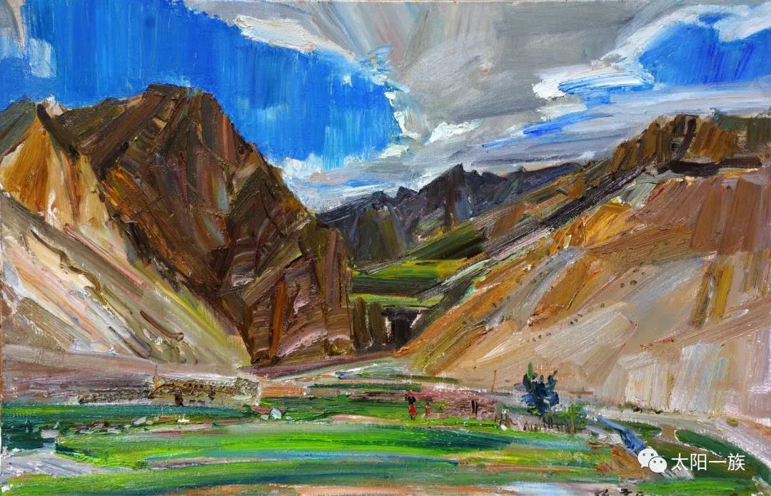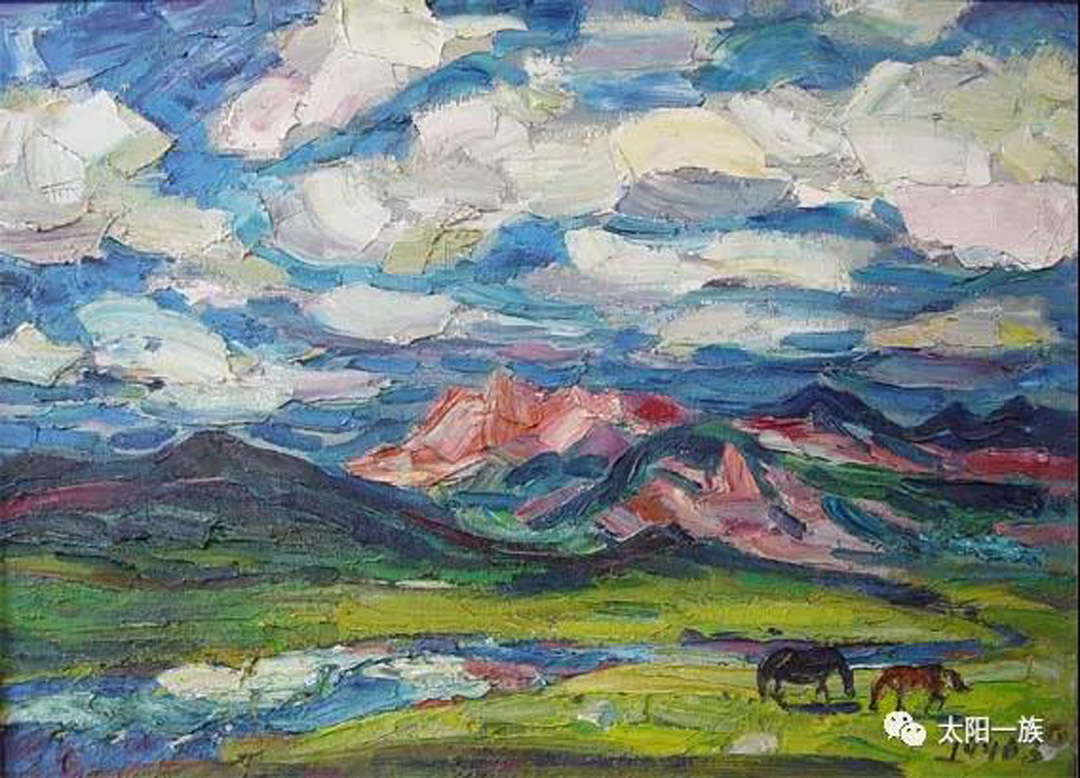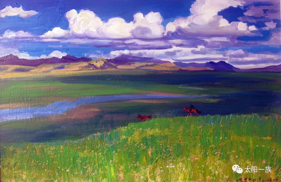 有次在草原上寫生,高原的天氣變化無常,暴風(fēng)雨突然劈頭蓋臉地襲來,但看到天邊那壯觀的景象,實在舍不得離開,即使被大雨澆透了,也心甘情愿。之后又是云過天空,萬里無云的落寞和寂寥。趟在毛茸茸濕漉漉的草地上,面對湛藍(lán)的天空,天有多高遠(yuǎn),心就有多遼闊。從那時起,我愛上了草原。