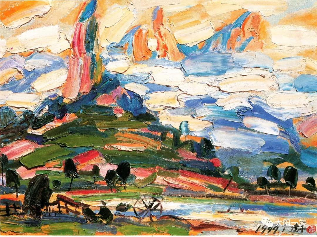 多年來,背著畫箱走天下,看慣云起云落,朝霞晚曦,山嵐繚繞,對世事早已處變不驚。每寄情于山水,也閱讀各式各樣的云卷云舒,預(yù)判或者將所愿寄托于上蒼賜予的這片風(fēng)采,這片能讓人聯(lián)想到那件美麗衣裳的云。