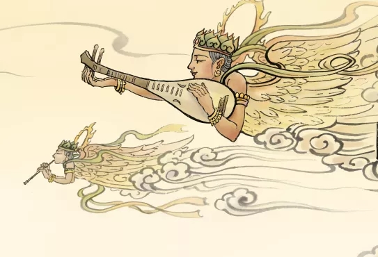 印度傳說——在高加索山(即喜瑪拉雅山)上棲息著一只神異的鳥,名叫Musikar(英語Music音樂一詞的諧音),它的嘴上有七個音孔,隨著季節(jié)變化,它便吹奏不同的曲調(diào)。瀕死的時候會燃燒,不久,在溫暖的灰燼中孕育出一個蛋,時機一到,便孵出一只名叫Musikar的鳥。
