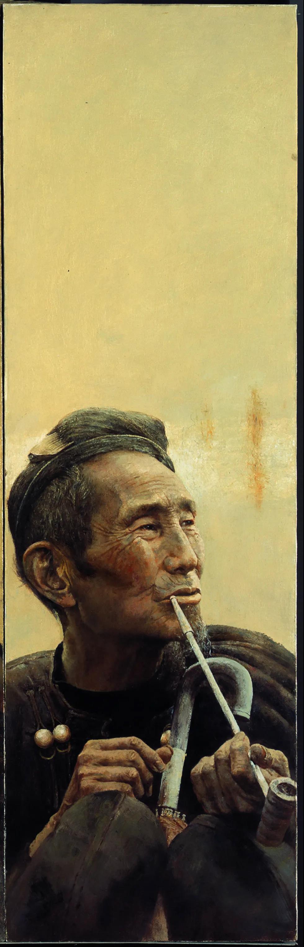 《涼山風情組畫》的創(chuàng)作,是我對涼山彝族人生活感受的藝術再現(xiàn)。涼山彝族自治州這塊神秘的土地,農(nóng)人們簡單的生活雖敵不過都市的物質豐富,但卻有著恬淡、多情、怡然、深情的詩意,我多次進入四川涼山地區(qū)感受彝族人的生活,每次都能激發(fā)創(chuàng)作沖動,最終選擇涼山彝族風情最具特色的火把節(jié)的一個真實場面來展示。畫面采用組畫豎式構圖,單個寫實的特寫人物,彝族特有的服飾,陽光下涼山普通的彝族人,濃郁的暖色調(diào)滲透著祥和的氛圍,展現(xiàn)涼山彝族人質樸、善良的內(nèi)心世界,和睦融洽、悠閑自得的生活狀態(tài),透射出濃郁的詩意。