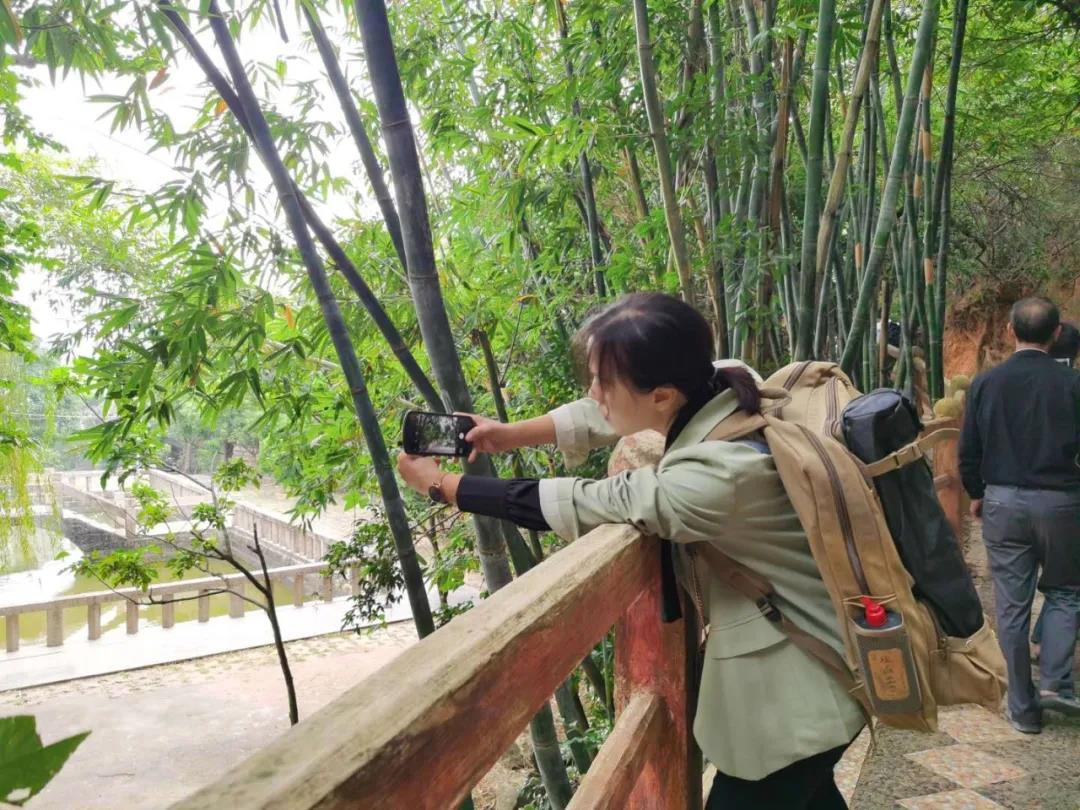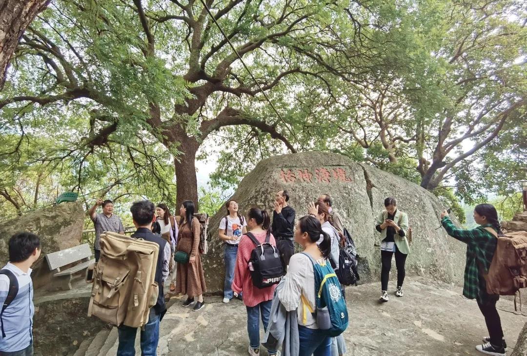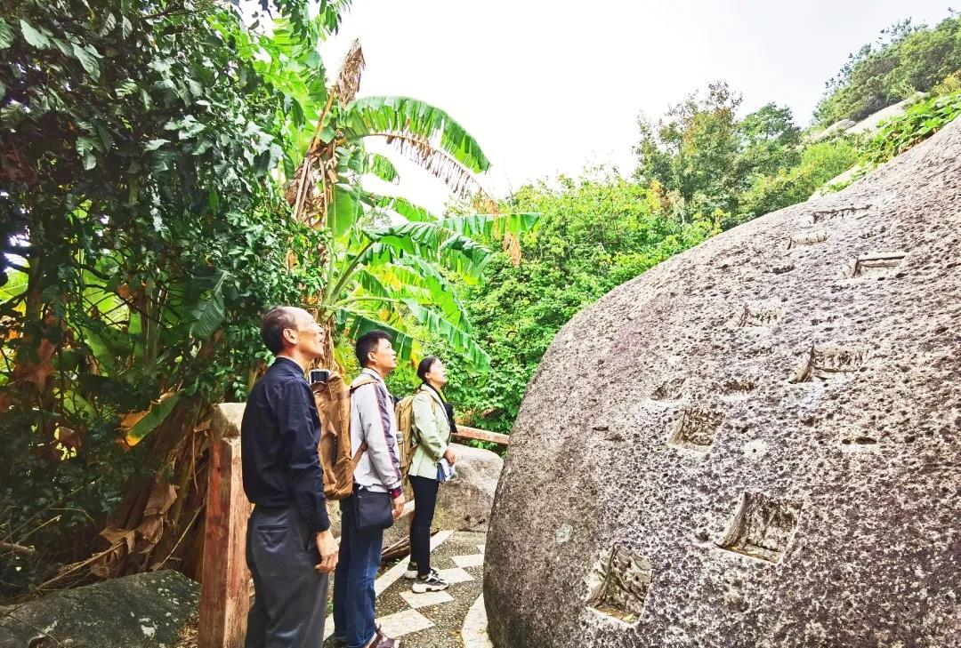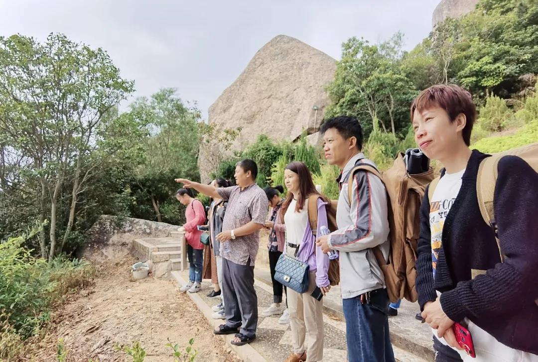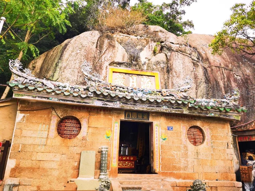 海月巖是漳浦縣著名的奇巖風(fēng)景,具有悠久的歷史。海月巖風(fēng)景天然秀麗,清靜幽雅,其海月巖寺大殿構(gòu)筑精巧,神工鬼斧,殿頂是由整塊百噸花崗巖巨石板構(gòu)建,渾然天成。海月巖背靠金剛山,面朝東山灣,依山傍水,怪石嶙峋,巖障環(huán)繞,別有洞天,芳草綠樹,凄凄蒼蒼,登高望遠(yuǎn)一覽秀色。阡陌交錯的道路、星羅棋布的田園屋舍、煙波浩渺的大海叢林以及屹立于江流中著名的石礬塔,盡收眼底,儼然一幅郁郁蔥蔥、美麗動人的風(fēng)景畫,是歷代文人墨客悠游駐足之地。全體學(xué)員登高望遠(yuǎn),看到如長龍臥波般的漳江灣特大橋消失在大陸的另一端,此情此景,無不嘖嘖稱贊,更有感于這幾年的家鄉(xiāng)巨變。