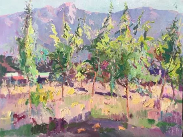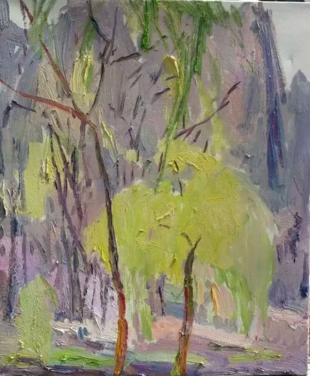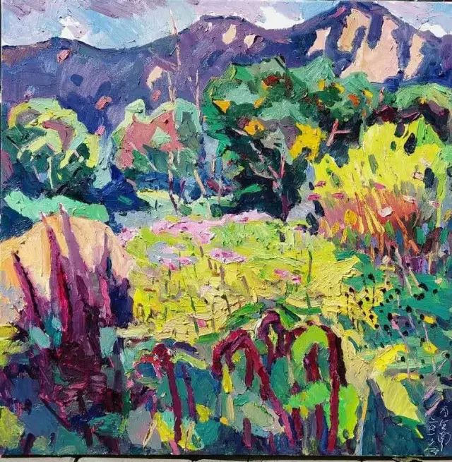 李生南作品通過表面的描繪,暗示著更深層次的意蘊(yùn),光鮮的背后一定有苦澀的付出,苦澀中也有光明和希望。每一幅作品講述一個(gè)故事,他用跳動(dòng)的筆觸和顏色,將斑駁的記憶掩映在浮光掠影中。他從不照搬大自然,他作品來源于自然高于自然,他把大自然比作母親之外更是他的良師益友,李生南從自然界吸取營養(yǎng)和水分,作為藝術(shù)家對(duì)于大自然的回報(bào)就是讓母親最美麗的瞬間留在畫面上。