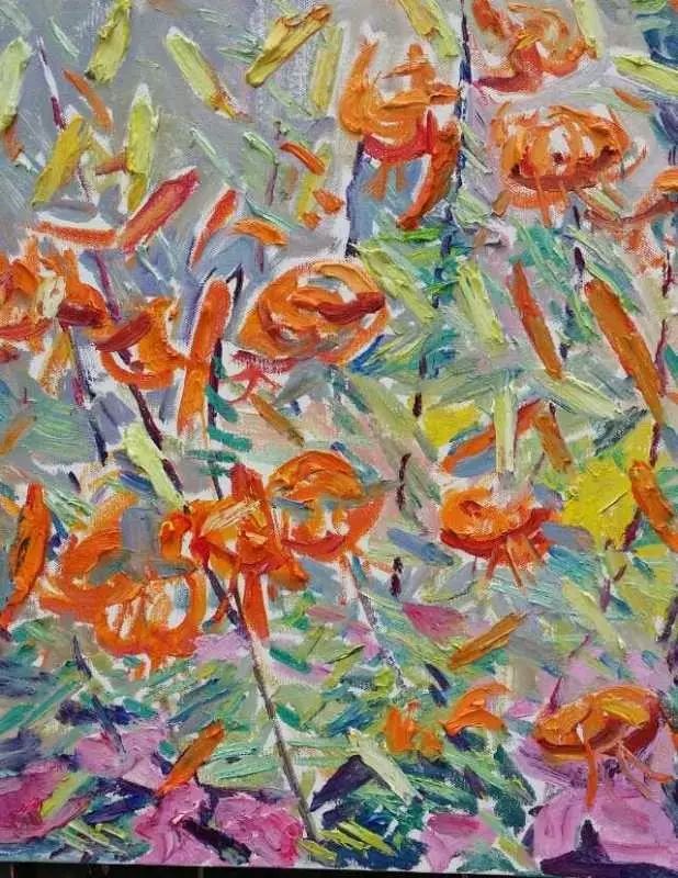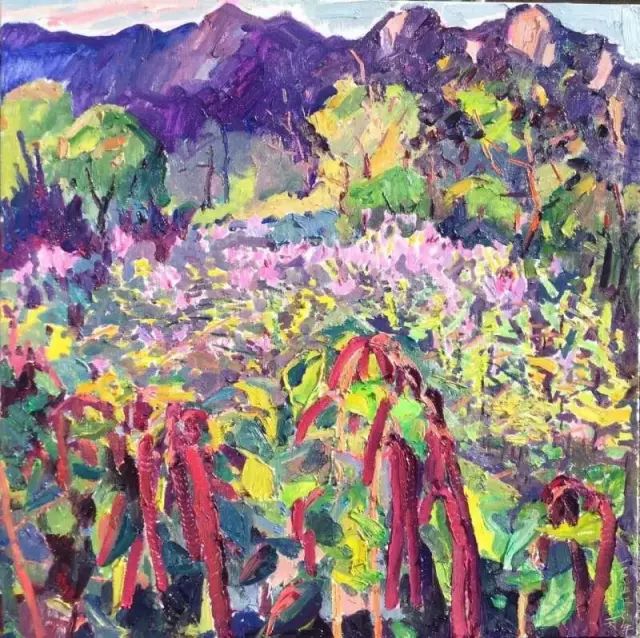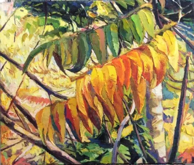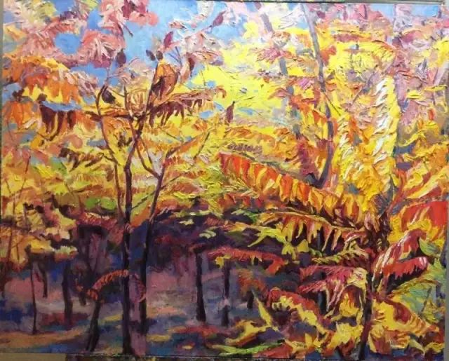 觀李生南油畫作品有一種直觀感覺,就是他把大自然提純了,無論是筆觸還是色彩有一股沖擊力讓人震撼。李生南出生于遼東山區(qū),是大山養(yǎng)育了他,所以他對(duì)大自然懷有特殊感情,每當(dāng)他拿起畫筆就充滿激情,全身心投入到自然的懷抱,讓自己的心靈融入其中,所以,在他眼中自然界是一團(tuán)熾熱的烈焰,燃燒自己的身心,他將這種感覺用色彩凝聚在畫布上,這就是一個(gè)大山之子李生南的作品。